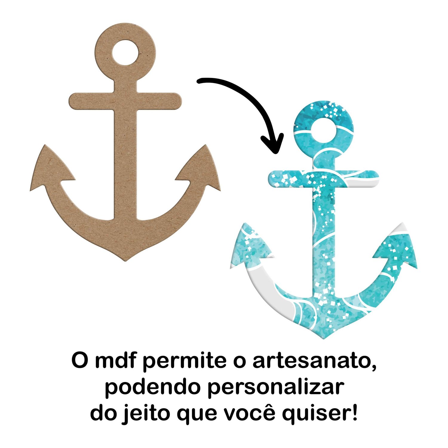 O aplique em forma de âncora barco é feito em MDF de alta qualidade, o aplique pode ser pintado pelo cliente de acordo com seu gosto, utilizando técnicas como pintura manual, stencil, aquarela e outras. Com sua forma delicada e suave, o aplique oferece liberdade criativa para criar um design único, adaptável a diferentes estilos e temas. Perfeito para quem busca personalizar o ambiente com um elemento decorativo especial.
