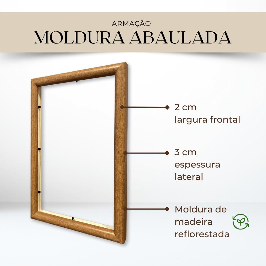 Imagine transformar seu espaço com uma moldura que não só emoldura, mas também valoriza sua obra de arte ou fotografia! A moldura abaulada possui um estilo clássico, e é perfeita para adicionar uma sensação de movimento e profundidade, pois tem um design arredondado que cria um efeito tridimensional. Feita com materiais de alta qualidade, ela traz durabilidade e um acabamento impecável, além de um revestimento altamente resistente, muito superior as molduras tradicionais em gesso, proporcionando assim alta durabilidade e beleza.