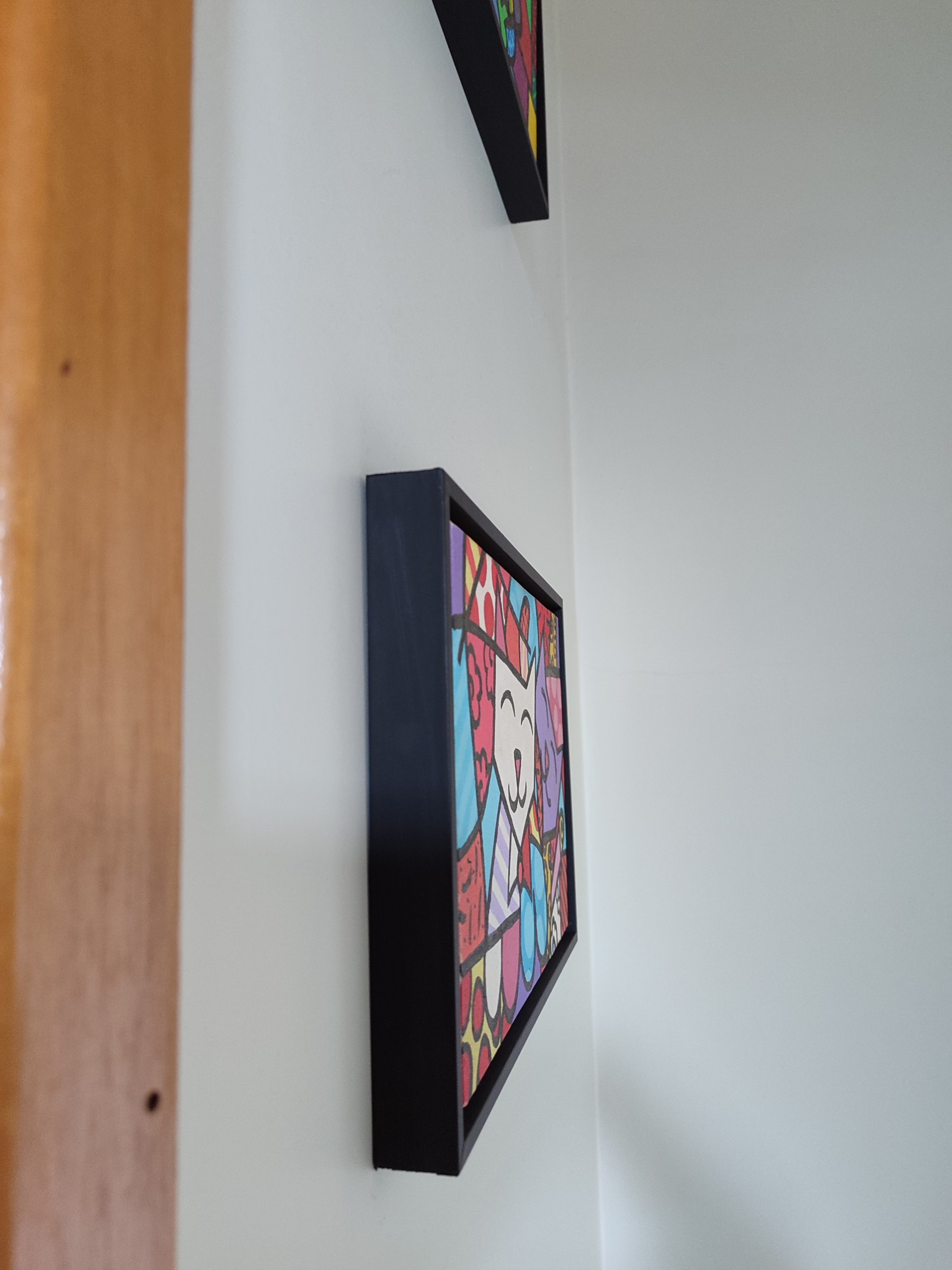Essa Moldura tem como principal característica o minimalismo, ela fica praticamente invisível na parte frontal, ficando apenas com 0,7cm de moldura para quem olha de frente para o quadro. Quando a vista é lateral, a altura dela da parede é 2,8cm.
