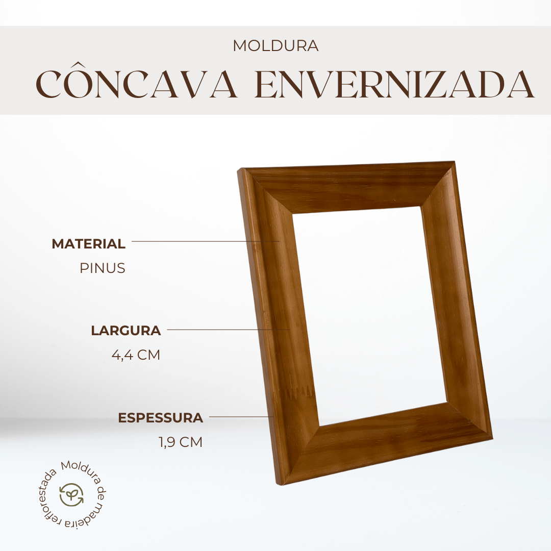 Material: Moldura em madeira pinus envernizada (não acompanha fundo mdf ou proteção para a imagem);