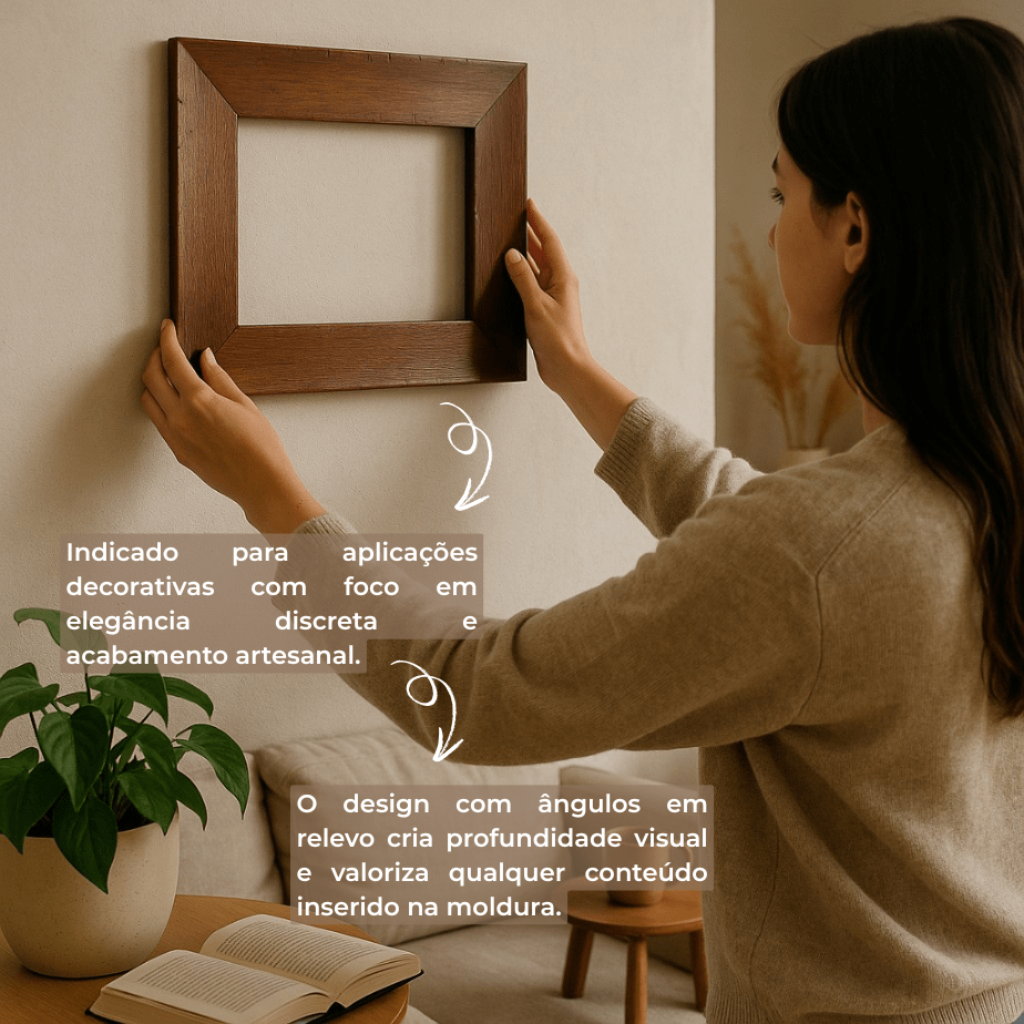 Esta moldura possui acabamento chanfrado e detalhe côncavo, conferindo profundidade e um visual leve. Versátil e funcional, é ideal para composições em ambientes residenciais ou corporativos. Seu estilo combina elementos do rústico refinado e do clássico contemporâneo, adaptando-se perfeitamente a projetos de interiores com estética Japandi, escandinava, minimalista ou natural.