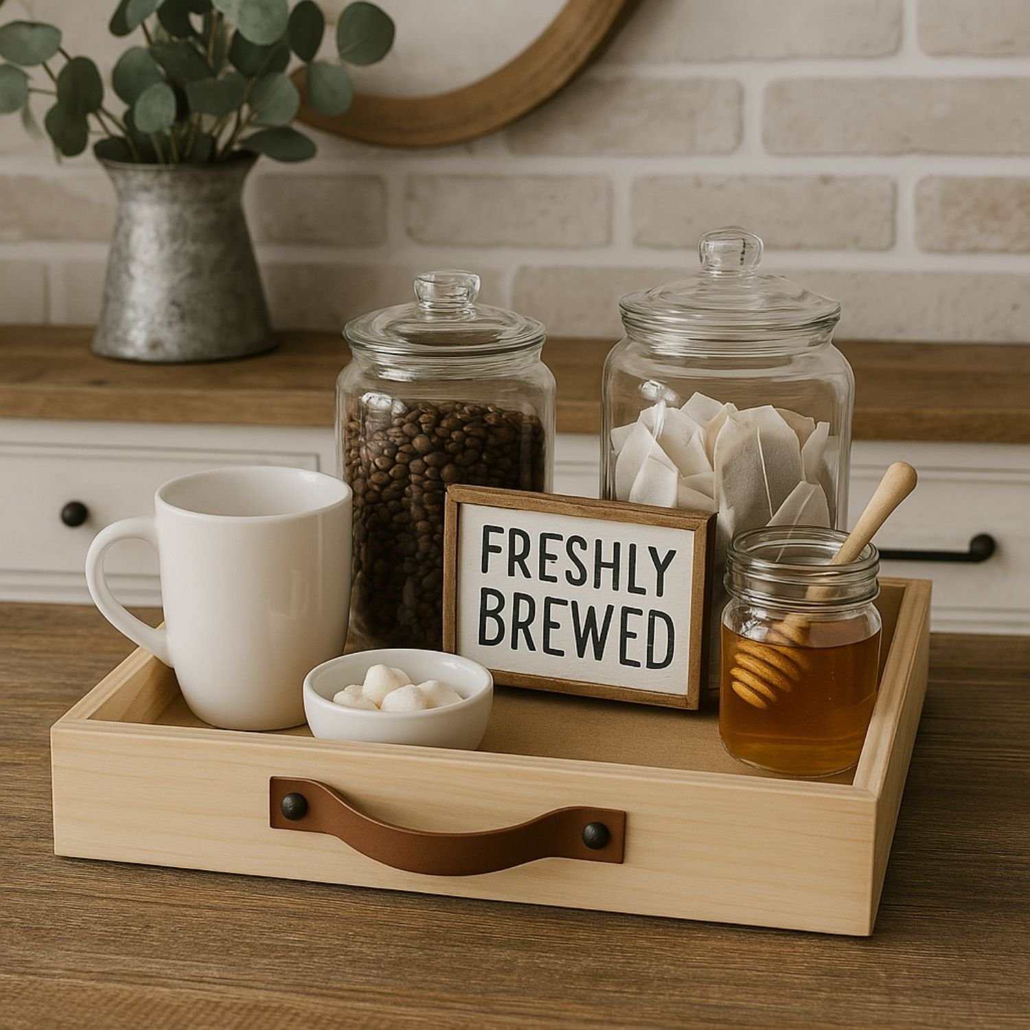Bandeja Decorativa em Madeira de Pinus, fundo em mdf 3mm e alça em couro sintético. Essa bandeja é versátil e multifuncional, pois pode ser usada para servir café da manhã, na decoração e na organização do ambiente. Servir amigos, visitas e familiares sempre foi a função principal das bandejas, até hoje!!! Mas, com sua beleza, a bandeja também pode ser utilizada como parte da decoração, seja em cima de mesas ou balcões, acomodando ou expondo alimentos e bebidas. Decorando com estilo e personalidade!!!