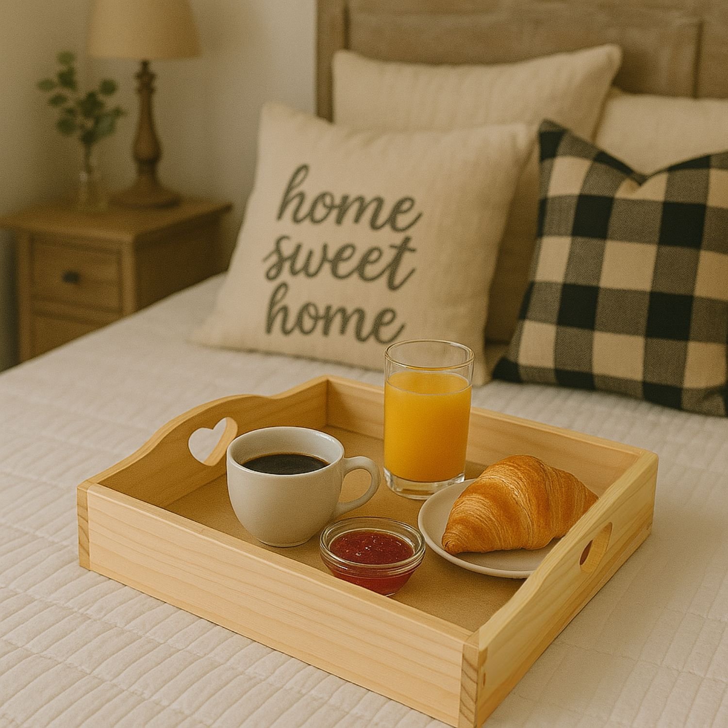 Bandeja Decorativa de Café da Manhã em Madeira de Pinus e Fundo em MDF. Essa bandeja é versátil e multifuncional, pois pode ser usada para servir café da manhã, na decoração e na organização do ambiente. Servir amigos, visitas e familiares sempre foi a função principal das bandejas, até hoje!!! Mas, com sua beleza, a bandeja também pode ser utilizada como parte da decoração, seja em cima de mesas ou balcões, acomodando ou expondo alimentos e bebidas. Decorando com estilo e personalidade!!!