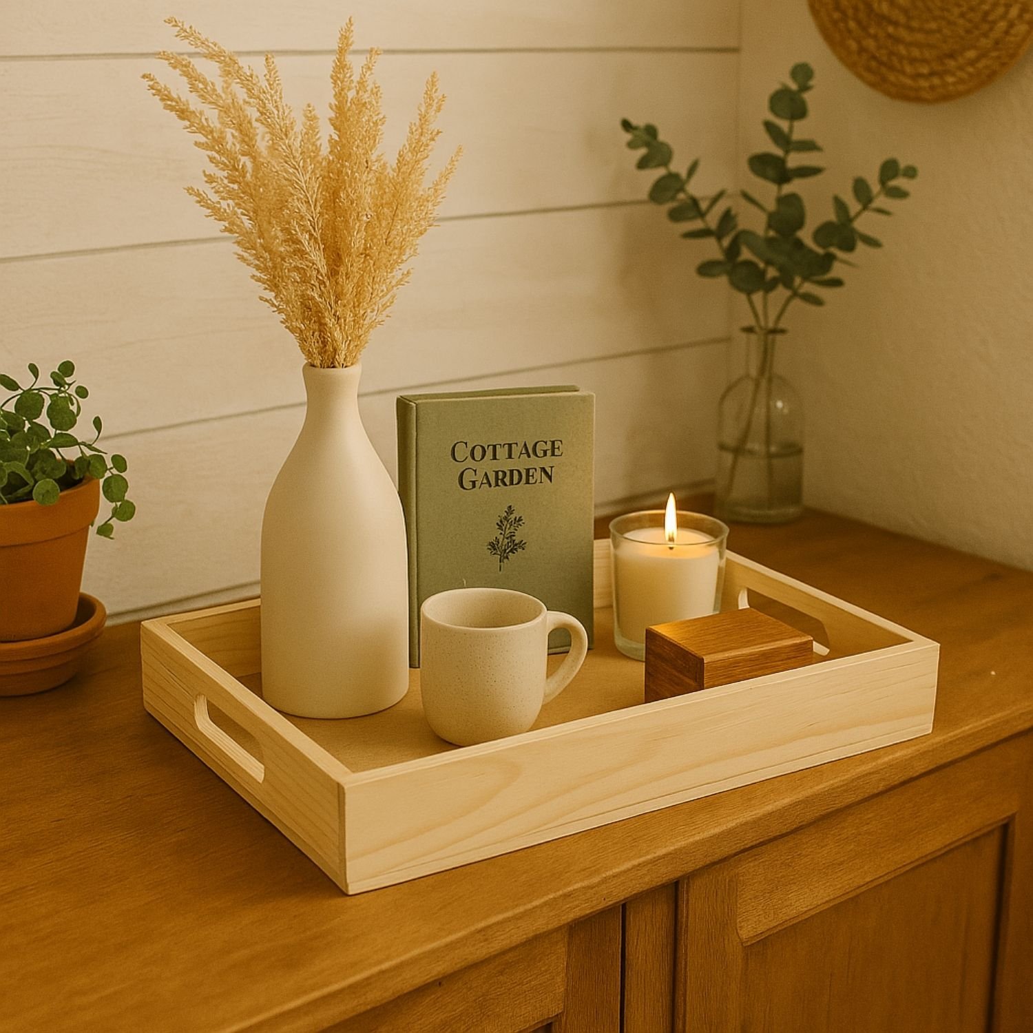 Bandeja Decorativa de Café da Manhã em Madeira de Pinus e Fundo em MDF. Essa bandeja é versátil e multifuncional, pois pode ser usada para servir café da manhã, na decoração e na organização do ambiente. Servir amigos, visitas e familiares sempre foi a função principal das bandejas, até hoje!!! Mas, com sua beleza, a bandeja também pode ser utilizada como parte da decoração, seja em cima de mesas ou balcões, acomodando ou expondo alimentos e bebidas. Decorando com estilo e personalidade!!!