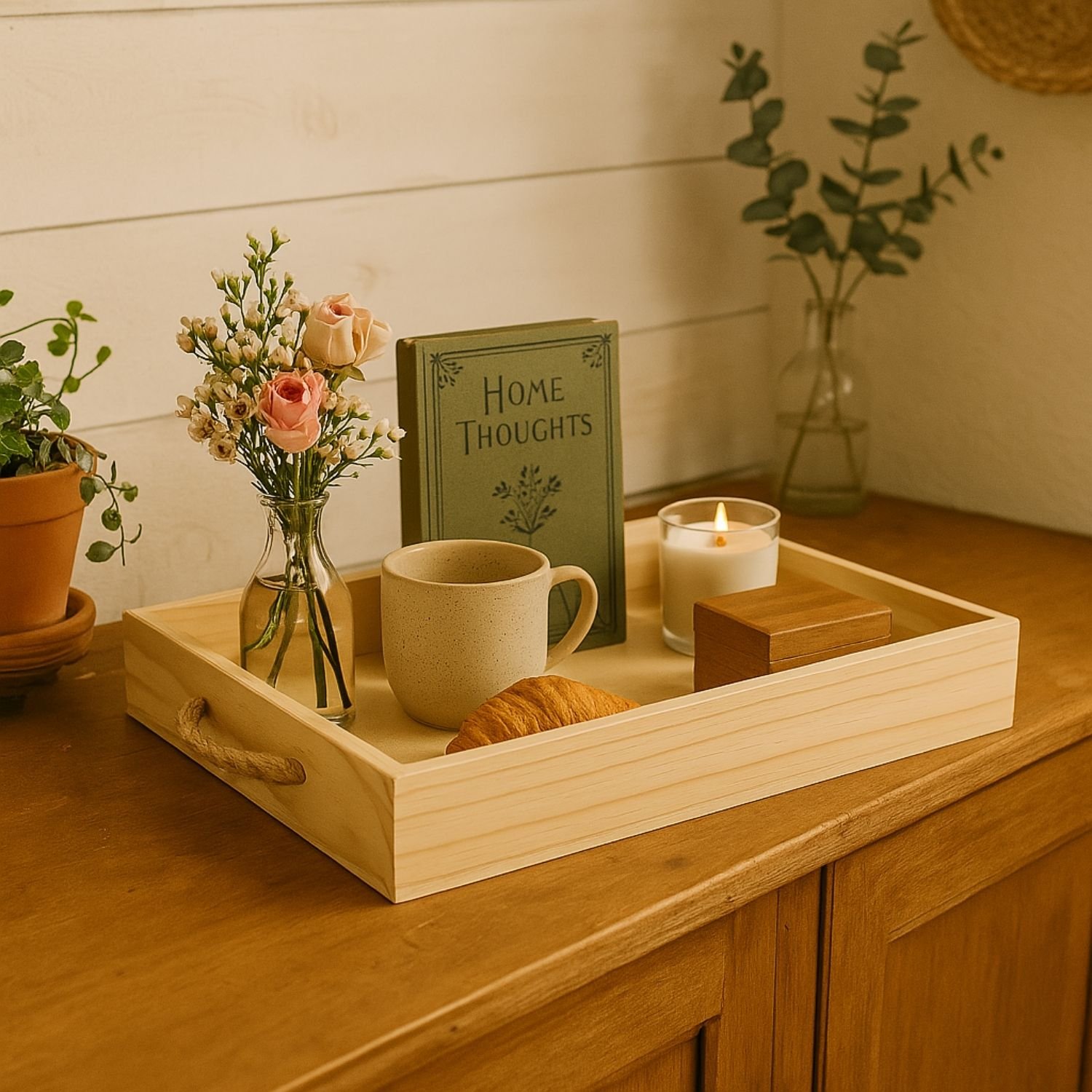 Bandeja Decorativa em Madeira de Pinus, fundo em mdf 3mm e alça em sisal. Essa bandeja é versátil e multifuncional, pois pode ser usada para servir café da manhã, na decoração, na organização do ambiente ou para montar aquela cesta de presente mega especial. Servir amigos, visitas e familiares sempre foi a função principal das bandejas, até hoje!!! Mas, com sua beleza, a bandeja também pode ser utilizada como parte da decoração, seja em cima de mesas ou balcões, acomodando ou expondo alimentos e bebidas. Decorando com estilo e personalidade!!!