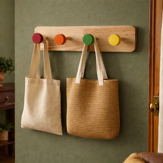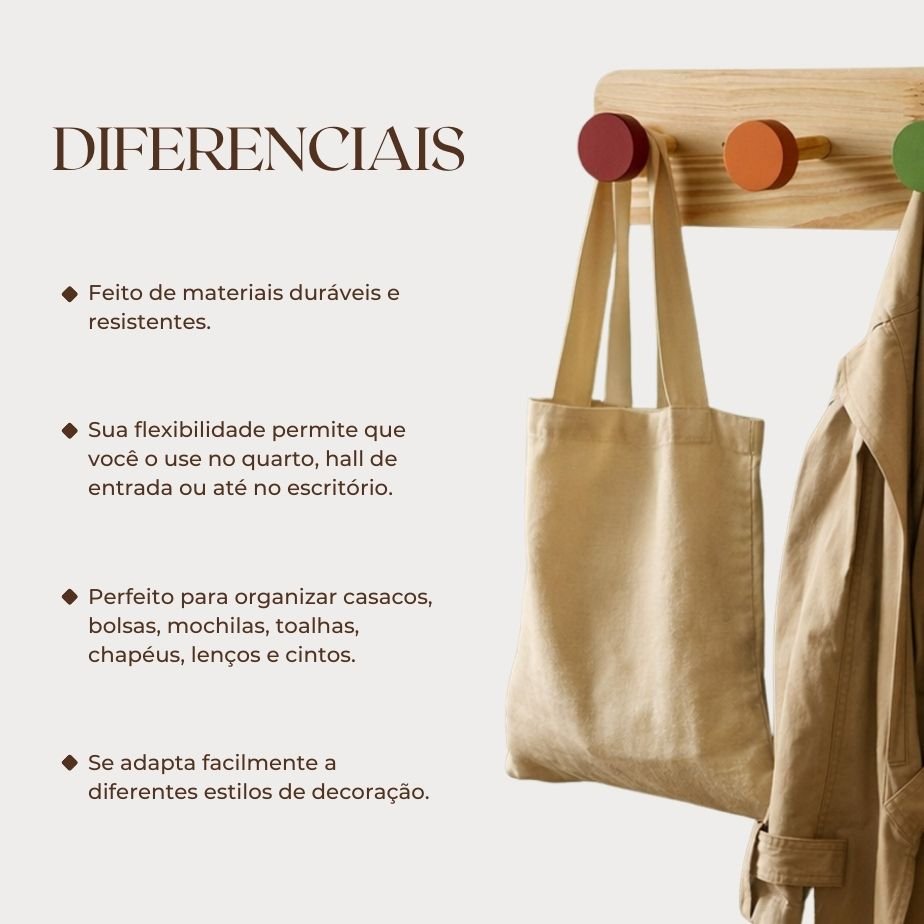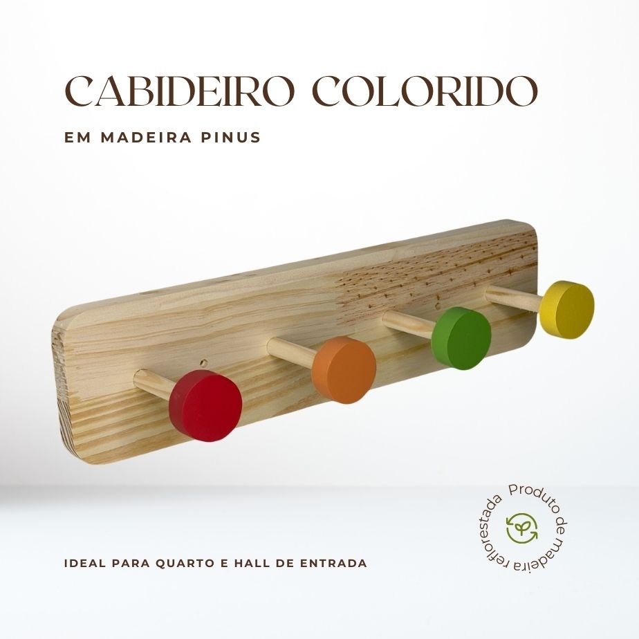 Este cabideiro com quatro penduradores coloridos é ideal para quem busca organização e estilo em um único item. Feito de pinus de 15 mm, ele combina durabilidade e leveza, oferecendo uma estrutura robusta e prática para o seu espaço. Ideal para entradas ou quartos, ele oferece uma maneira fácil e eficiente de organizar casacos, bolsas, chapéus e outros acessórios essenciais do dia a dia. Além de ser uma peça funcional, o cabideiro é super versátil, se adequando a diferentes estilos de decoração, desde o mais clean e minimalista até o mais descontraído e acolhedor. A instalação é simples e rápida, tornando-o uma opção prática para quem busca otimizar o espaço sem abrir mão do design.