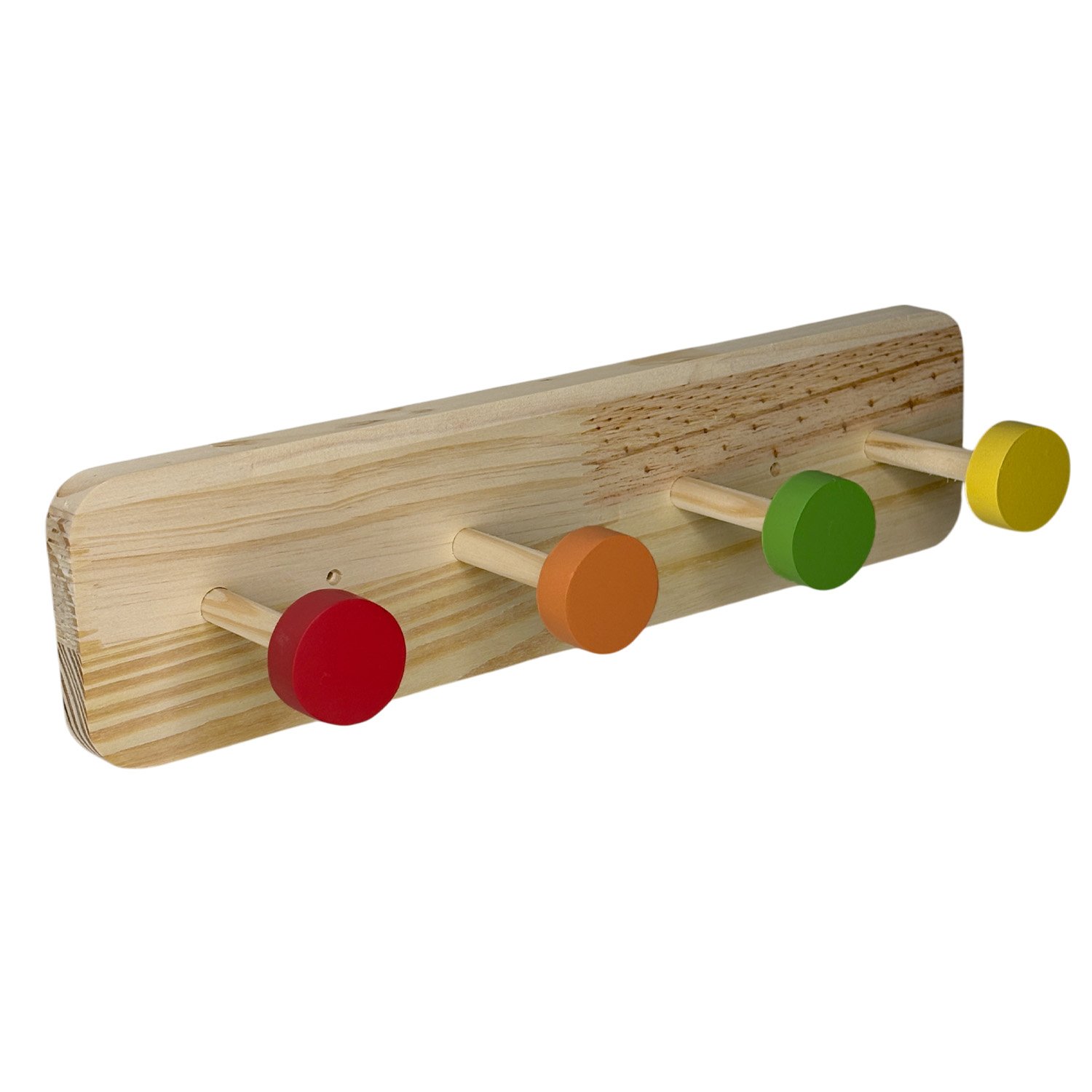 Cabideiro De Parede Colorido Em Madeira Pinus Com 4 Ganchos