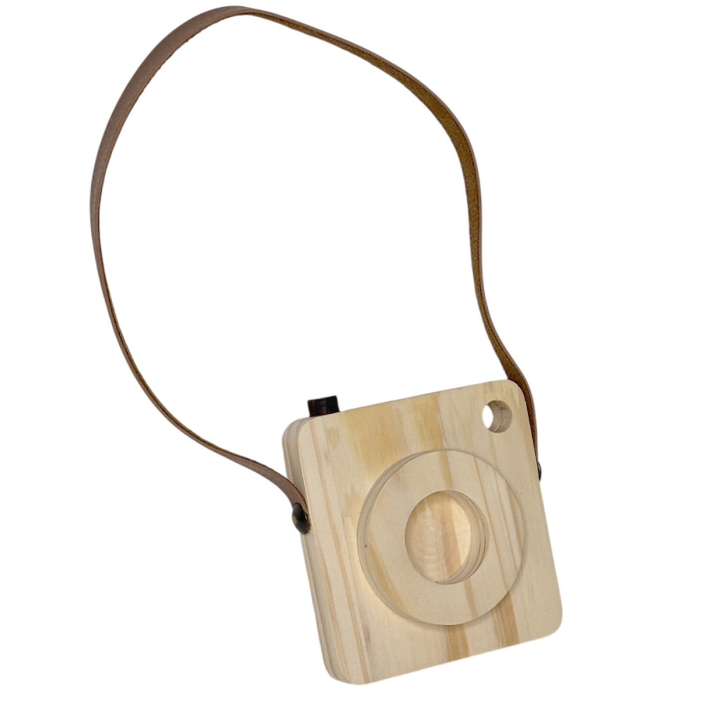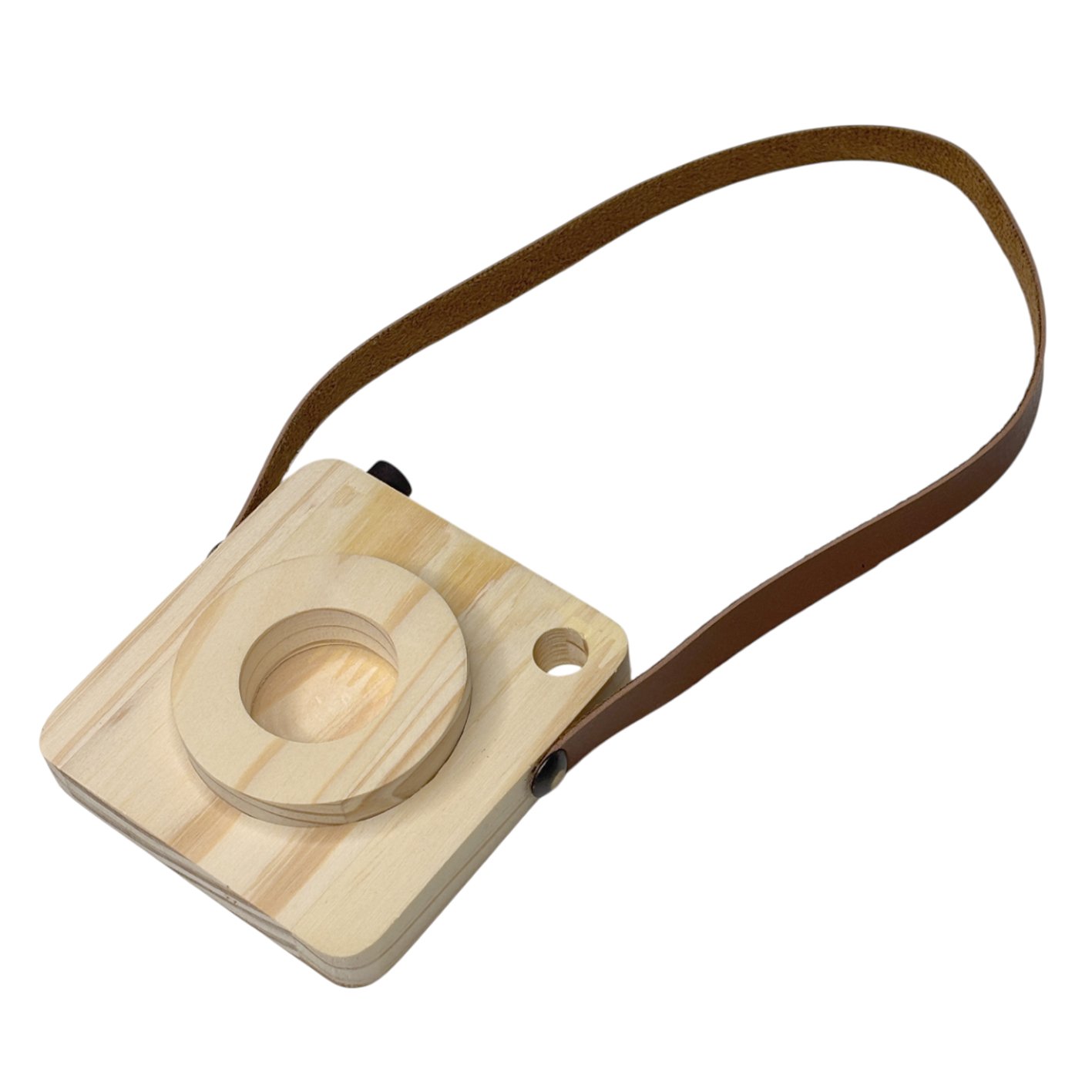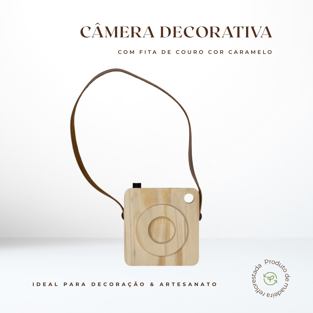 Câmera Fotográfica Decorativa em Madeira Pinus e Couro para Artesanato