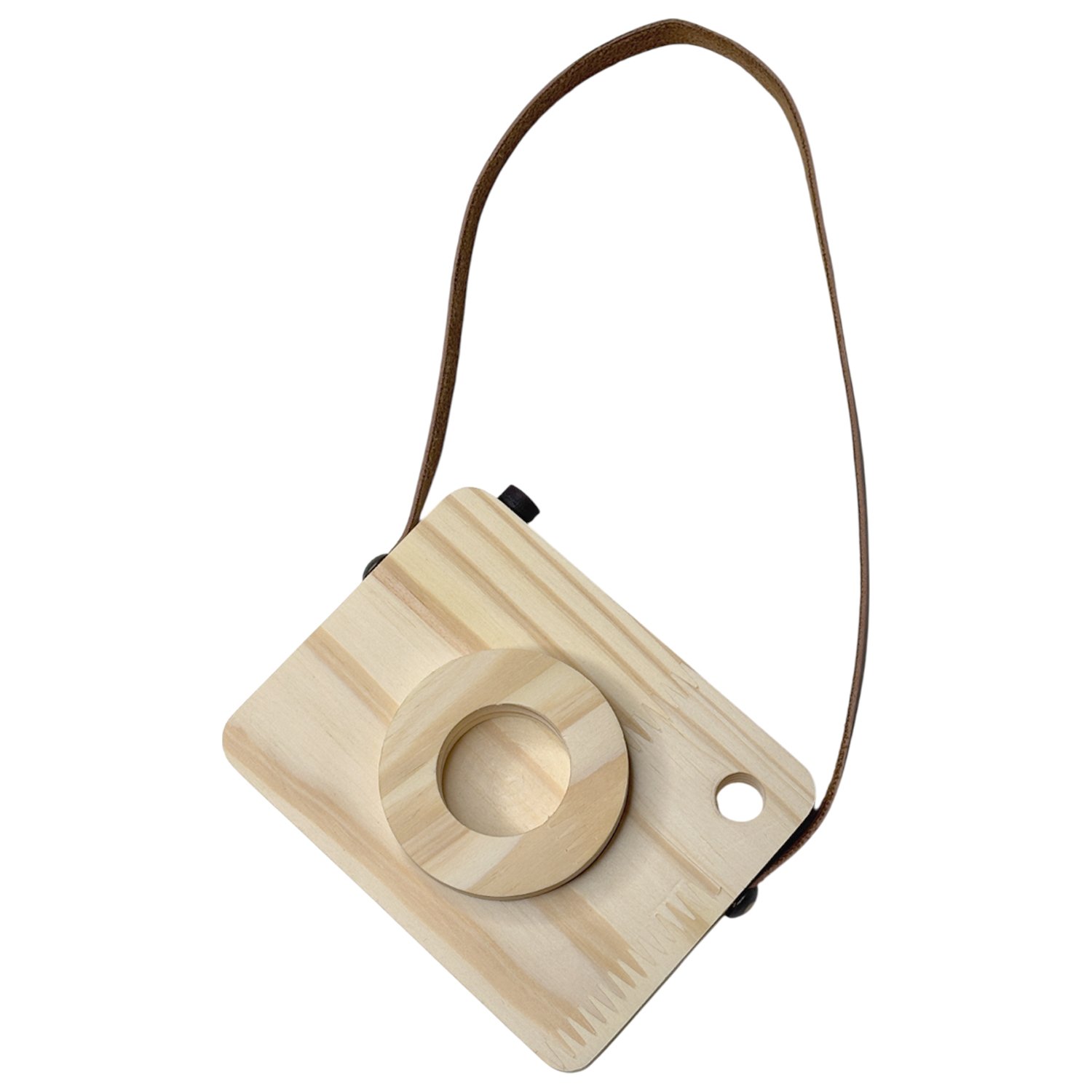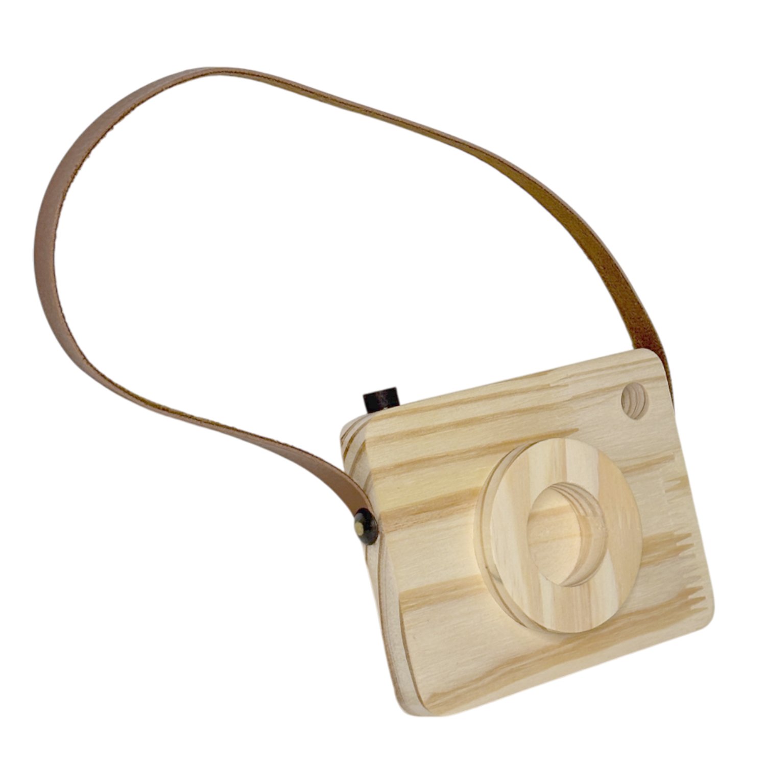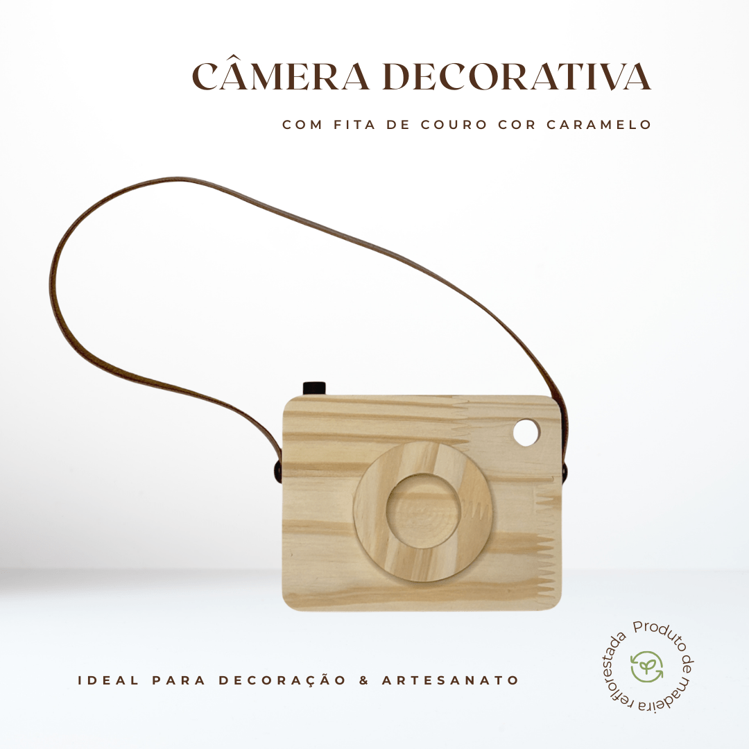 Câmera Fotográfica Decorativa em Madeira Pinus e Couro para Artesanato