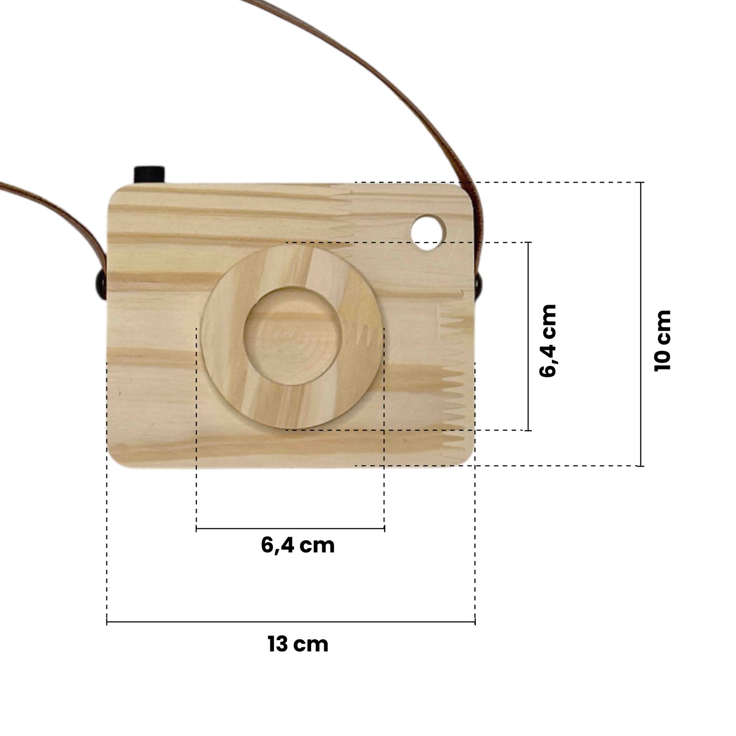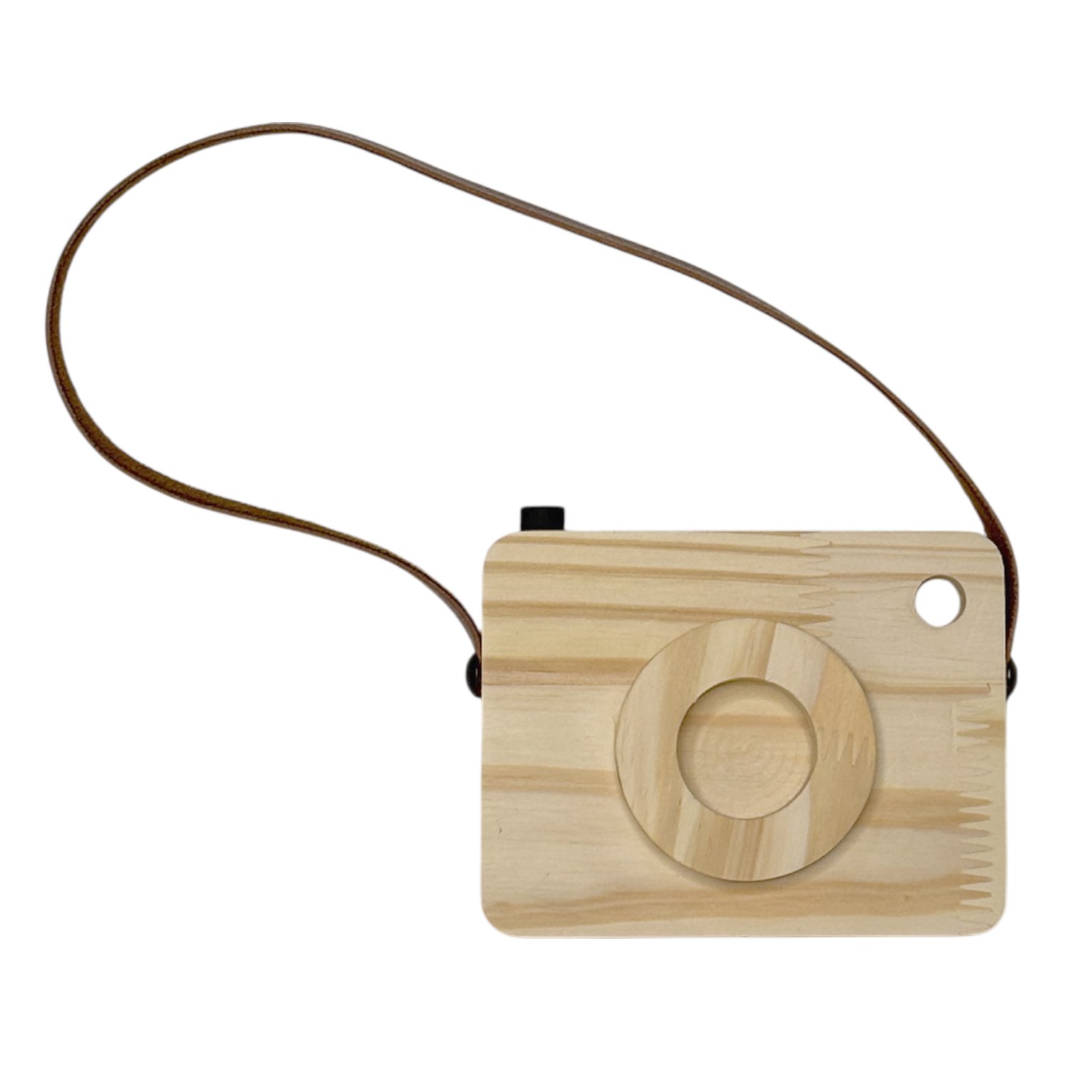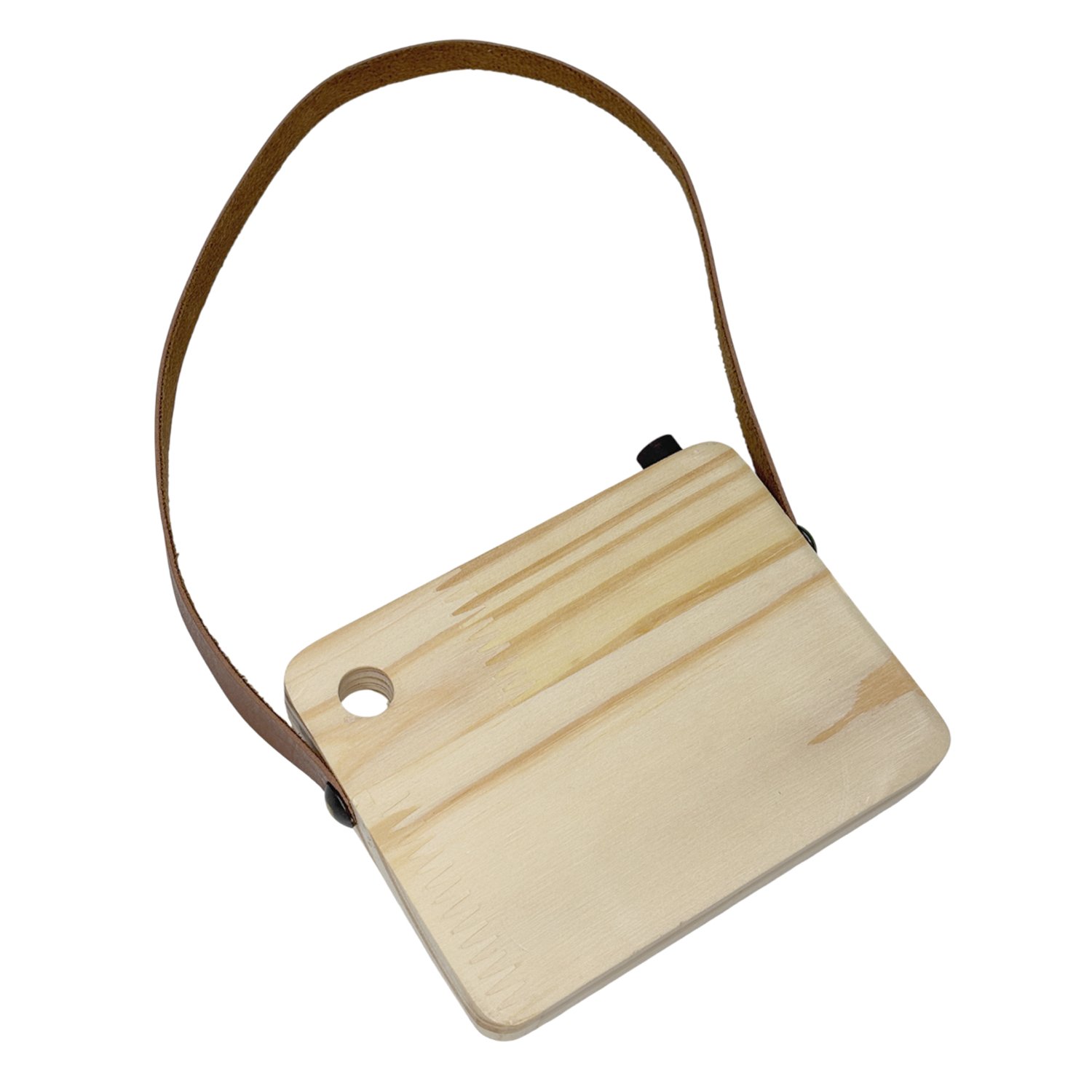 Câmera Fotográfica Decorativa em Madeira Pinus e Couro para Artesanato