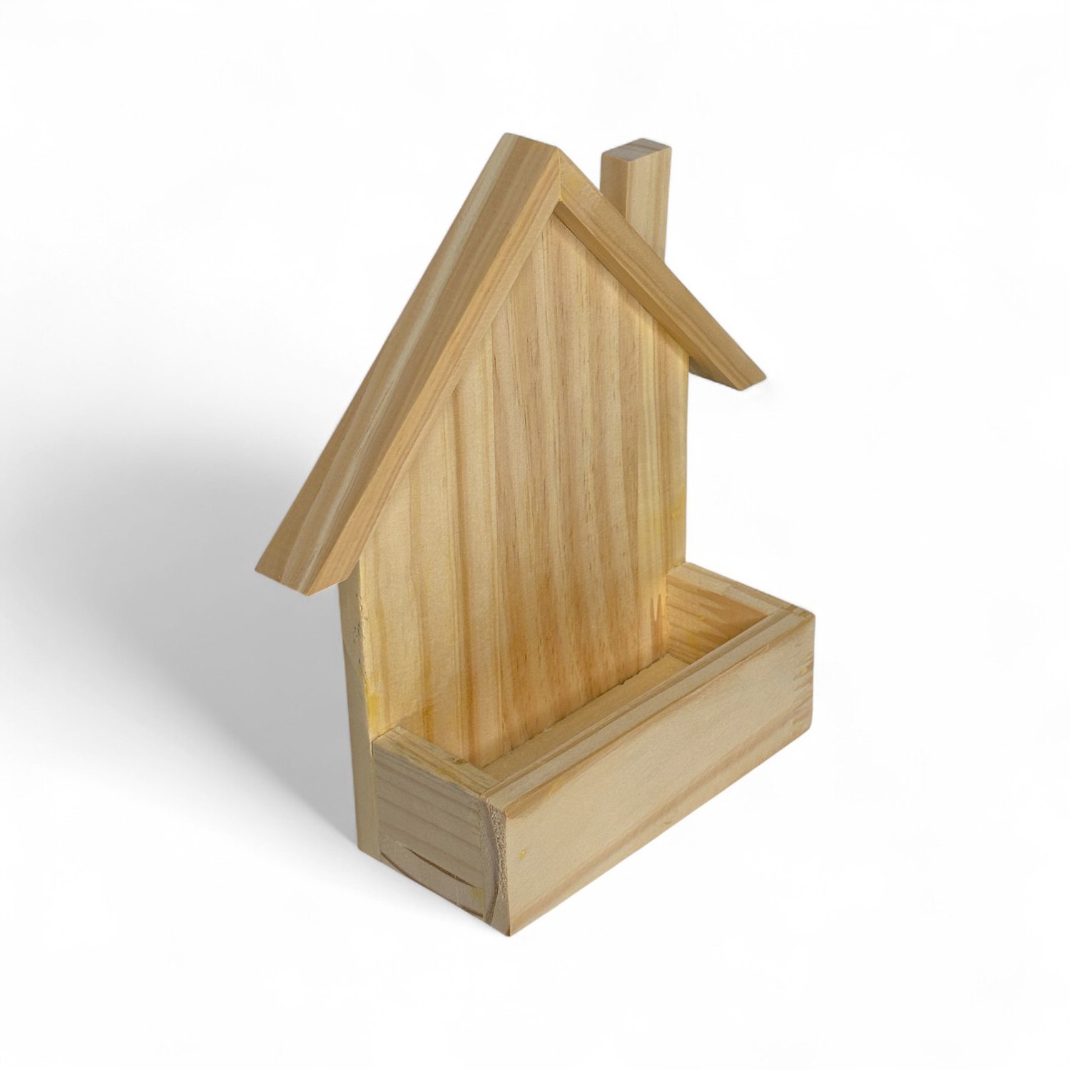 Casinha de Passarinho Decorativa em Madeira Pinus com Base para Arranjo de Pequenas Plantas e Flores – Ideal para Artesanato, DIY, Decoração de Casa e Jardim