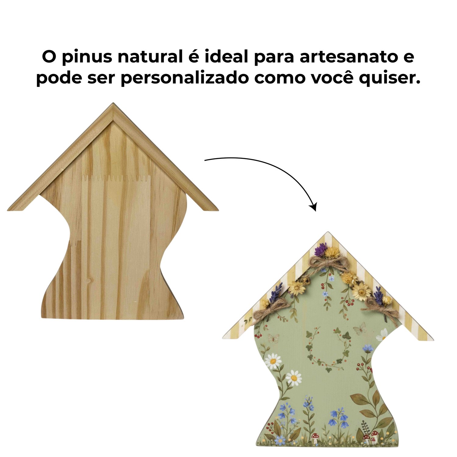 A madeira pinus é uma escolha nobre e sustentável, leve, firme e de textura elegante. Cada casinha carrega um toque natural e autêntico, valorizando a estética rústica e o aconchego que só a madeira real oferece. Por isso, é tão amada por artesãos, decoradores, professores e amantes de trabalhos manuais que buscam qualidade, originalidade e liberdade criativa.