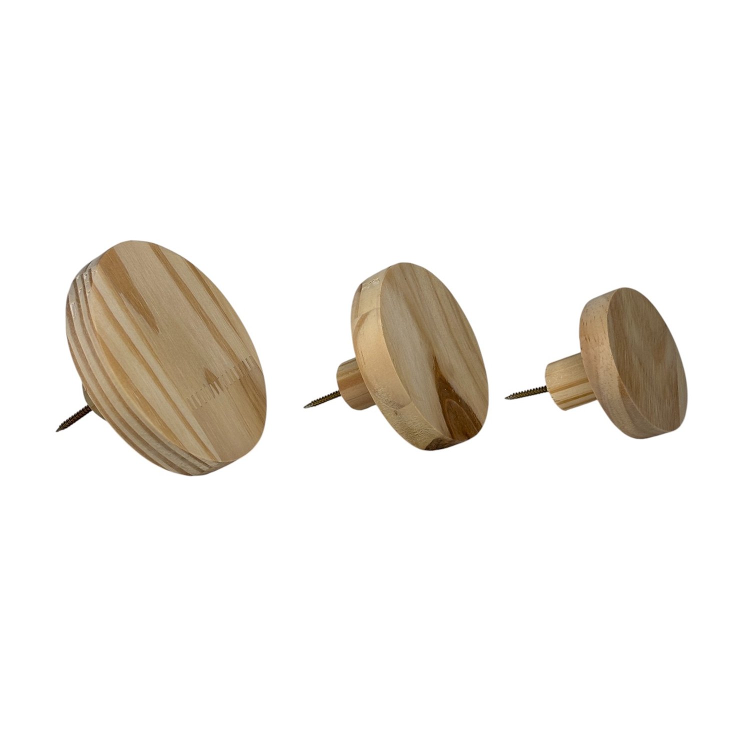 Conjunto 3 Ganchos Cabideiros Dots Redondos Em Madeira Pinus