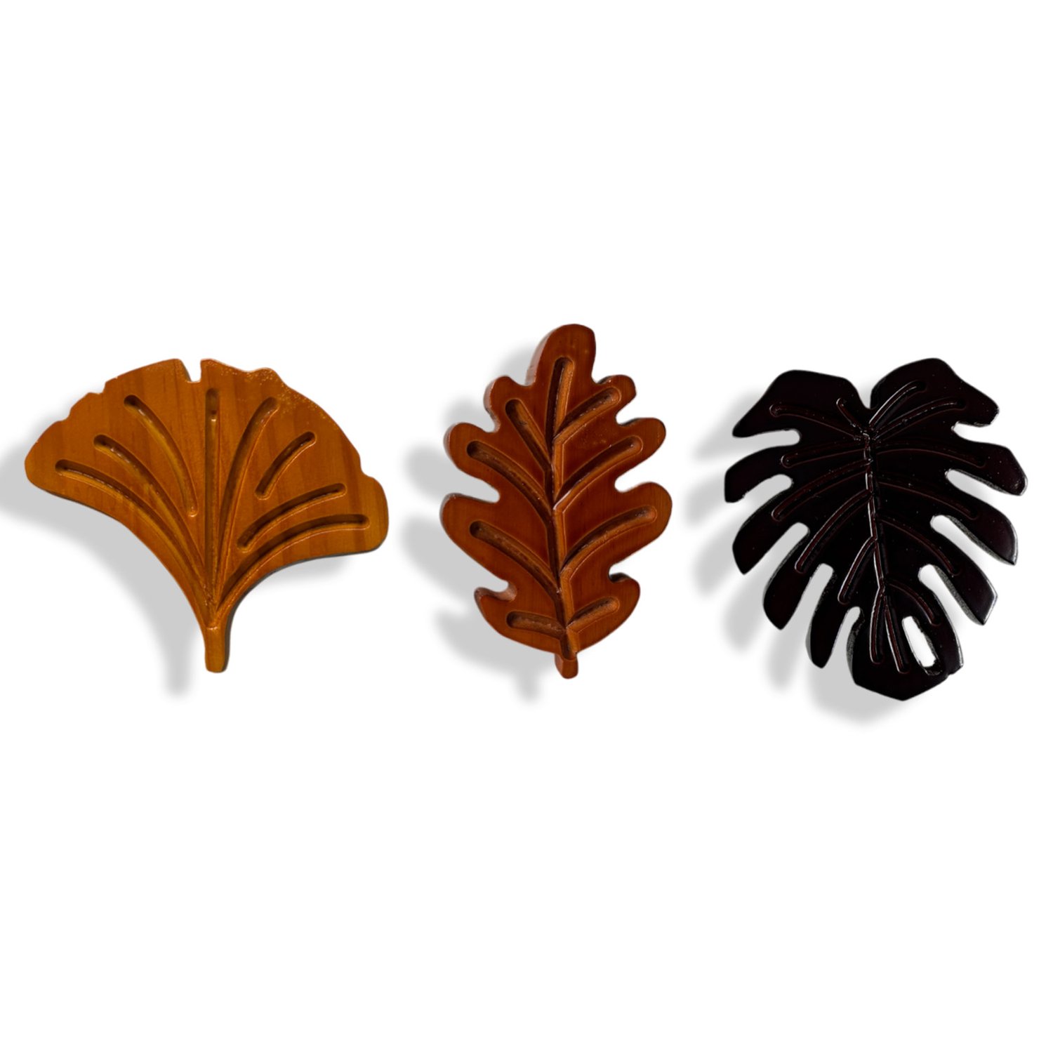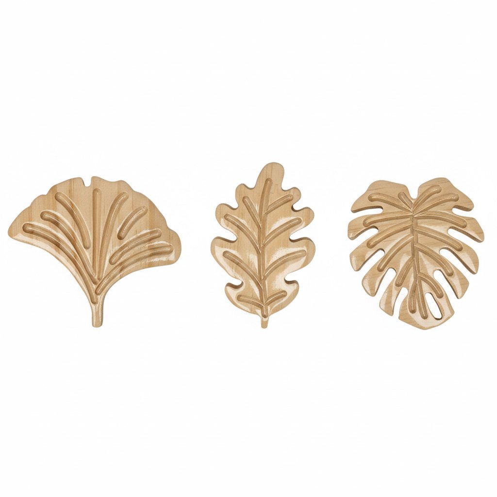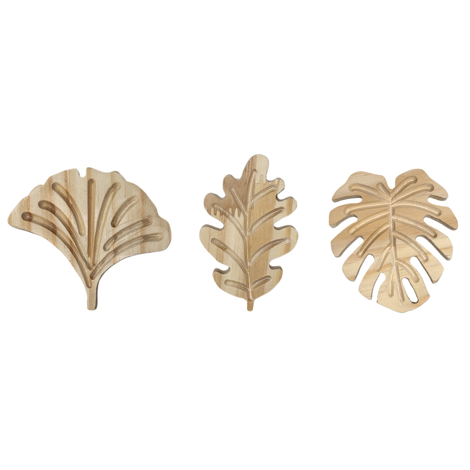 Conjunto 3 Ganchos Cabideiros Penduradores de Parede Folhagens Tropicais em Madeira Pinus