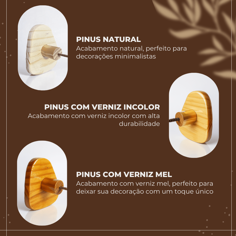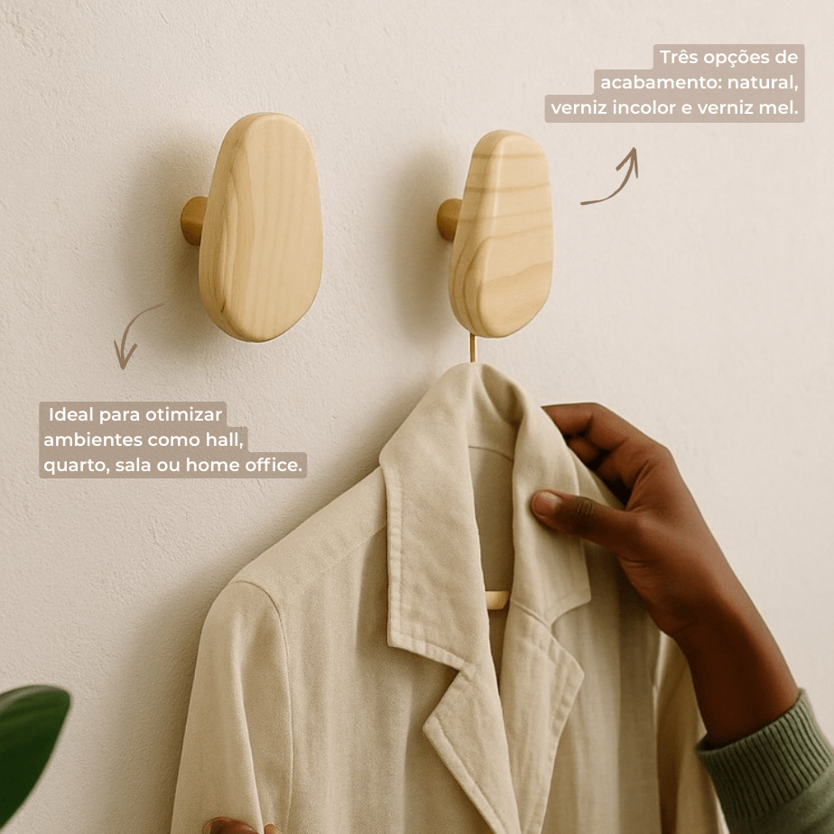 A madeira pinus, combinada com acabamentos de alta qualidade, transforma esses cabideiros em peças versáteis e atemporais — ideais para ambientes no estilo japandi ou qualquer proposta que valorize o essencial, o natural e o bem feito.