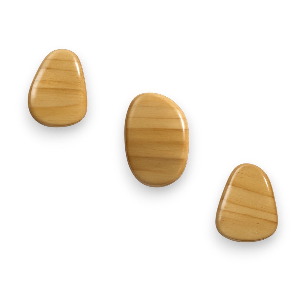 Conjunto 3 Ganchos Cabideiros Penduradores Dots Orgânicos De Madeira Pinus