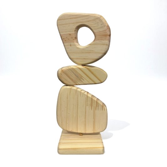 Esta escultura de estante, inspirada no estilo Japandi, combina a simplicidade do design escandinavo com a serenidade da estética japonesa. Feita em madeira de pinus, ela promove equilíbrio e relaxamento ao criar uma atmosfera tranquila e natural. Suas formas fluídas e minimalistas transmitem calma e harmonia, enquanto a textura da madeira evoca conexão com a natureza, trazendo estabilidade ao ambiente. A presença discreta da peça ajuda a suavizar a energia do espaço, criando uma sensação de bem-estar.
