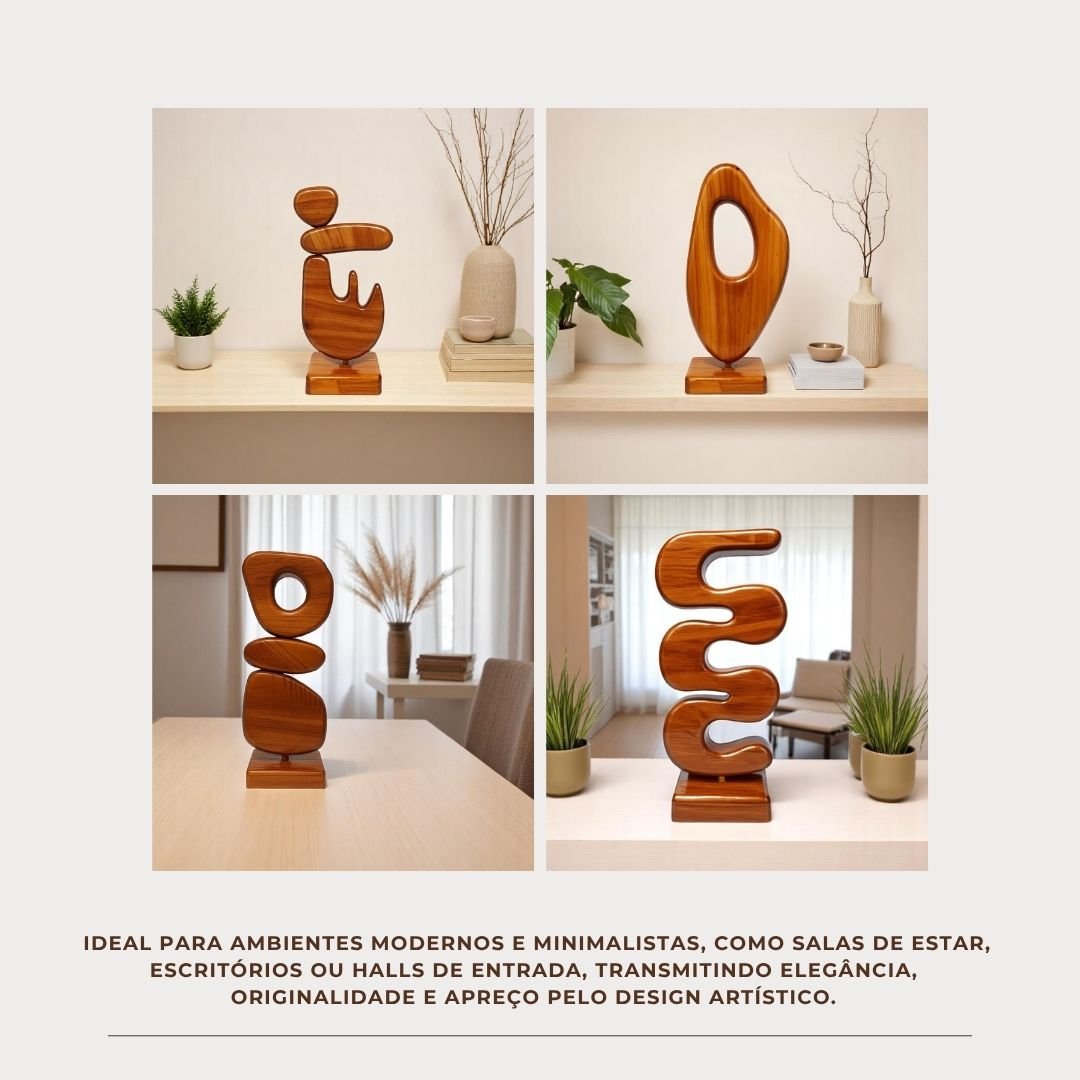Escultura Decorativa De Estante Formas Orgânicas Abstratas Em Madeira Pinus Com Suporte
