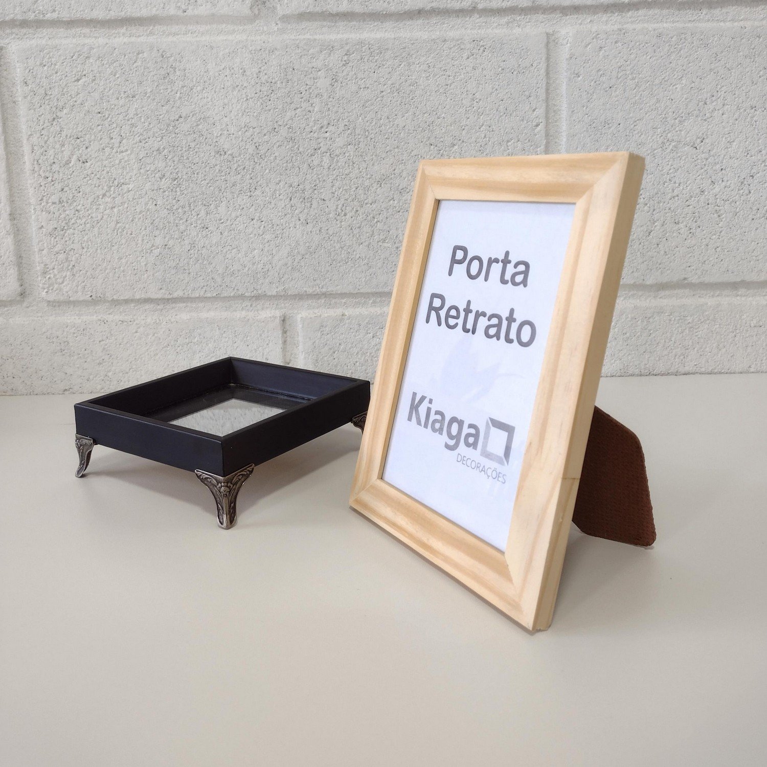 Kit 10 Porta Retratos 10x15cm com Moldura de Pinus Natural e Acetato Mais Fundo com Suporte - 2x1