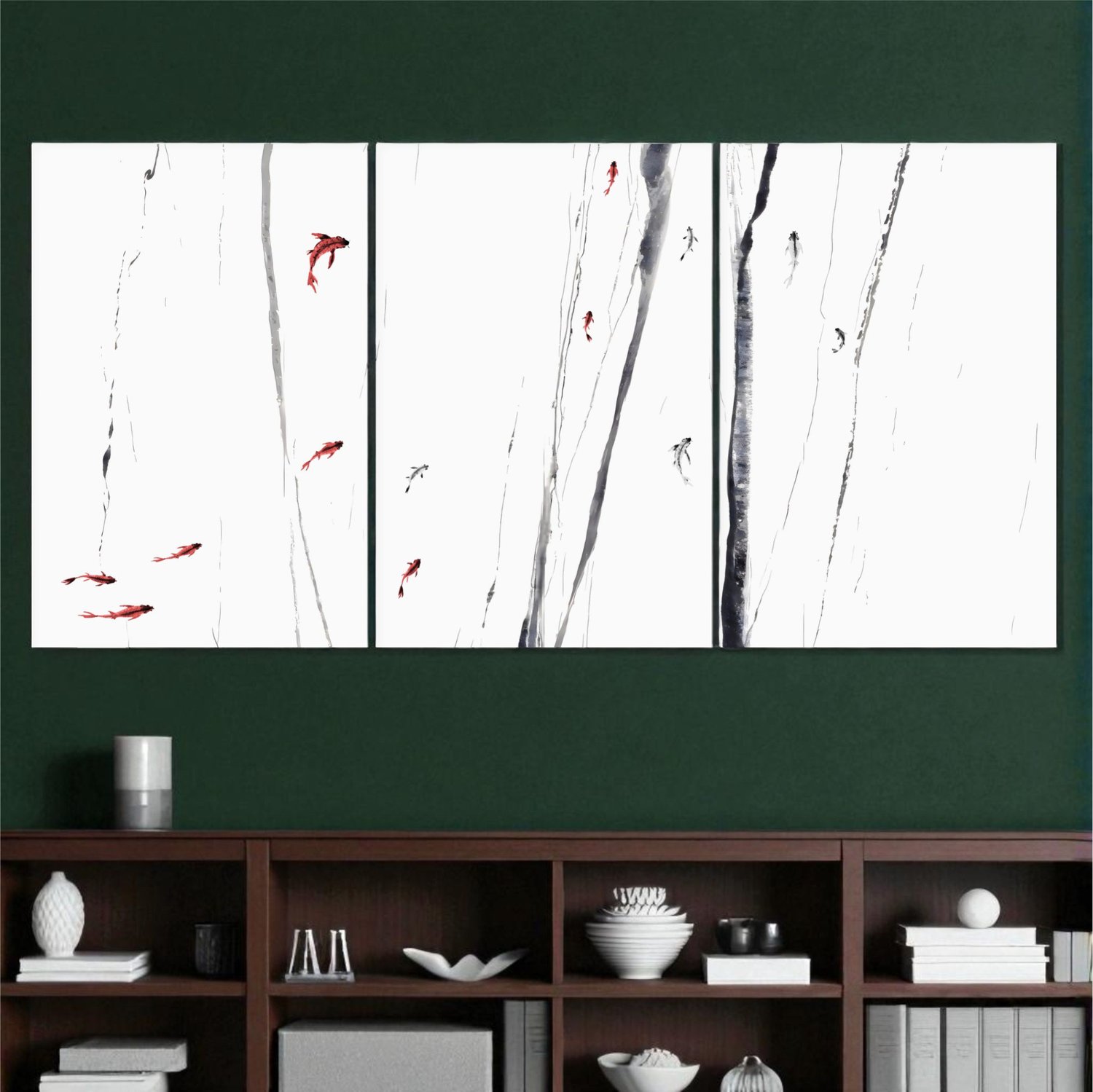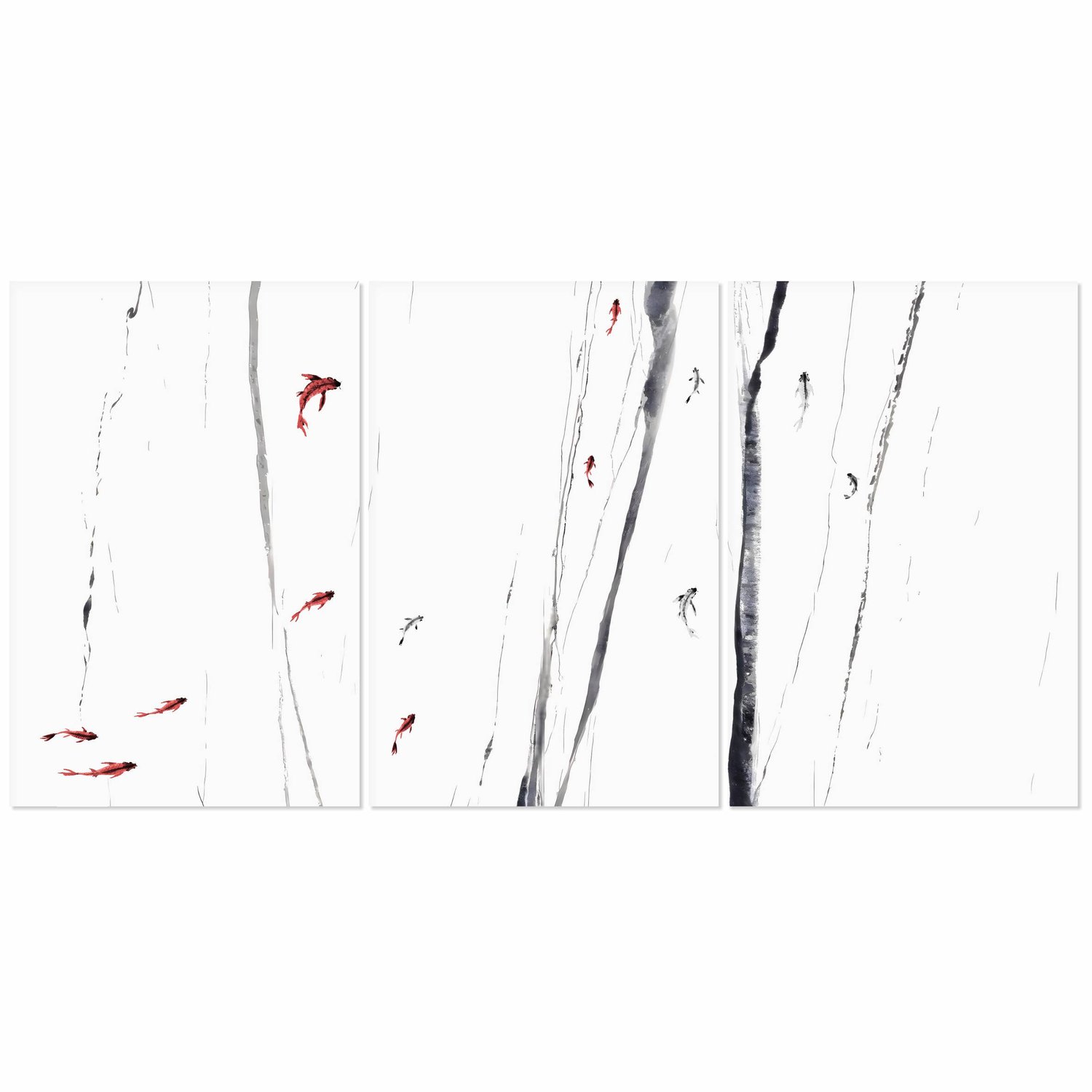 Kit 3 Placas Decorativas Koi Pintura de Carpas Nadando no Estilo Sumiê
