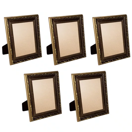 Kit 5 Porta Retratos 15x21cm de Moldura Dourada com Gravação e PVC Mais Fundo com Suporte - 4x2,5