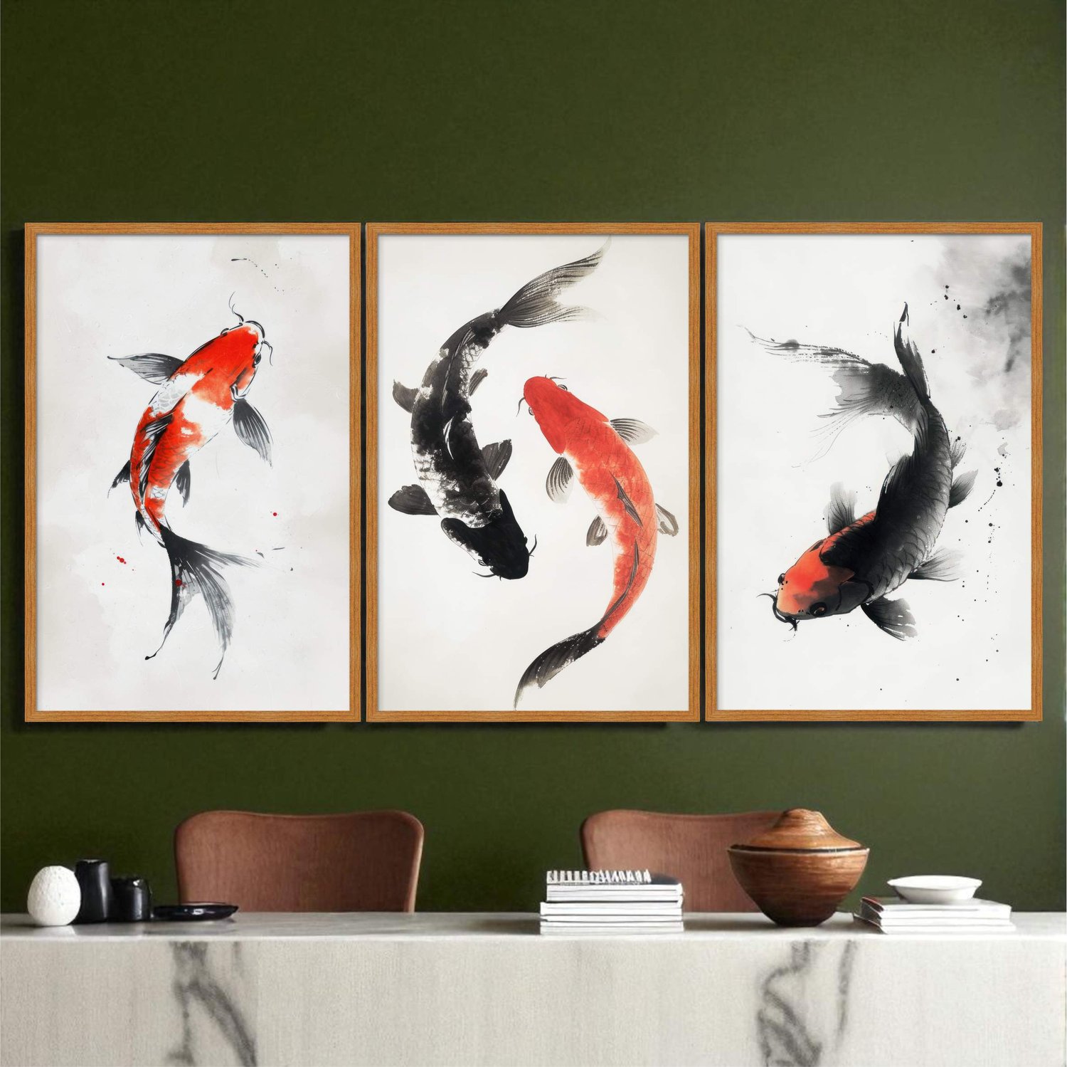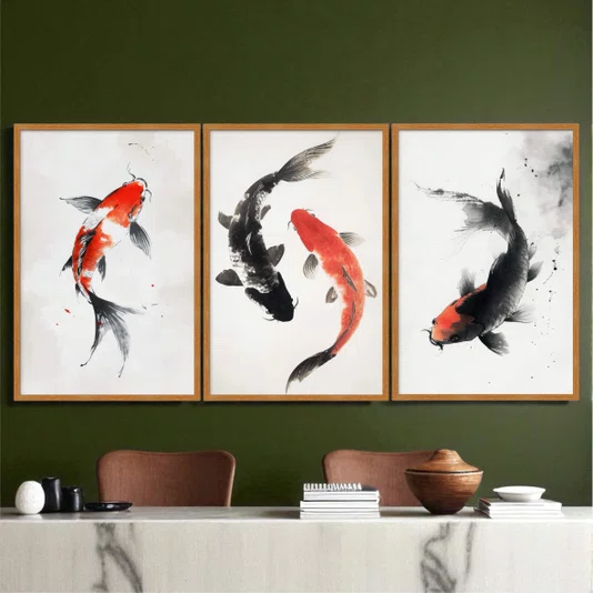 A carpa nishikigoi também é associada à prosperidade, longevidade e boa sorte, sendo um tema popular pela beleza estética e riqueza simbólica.