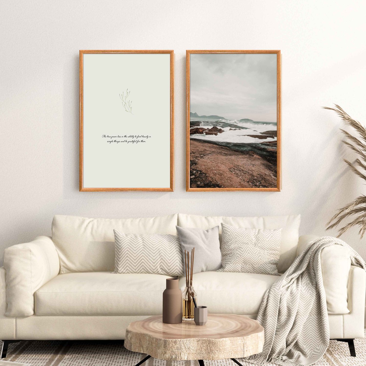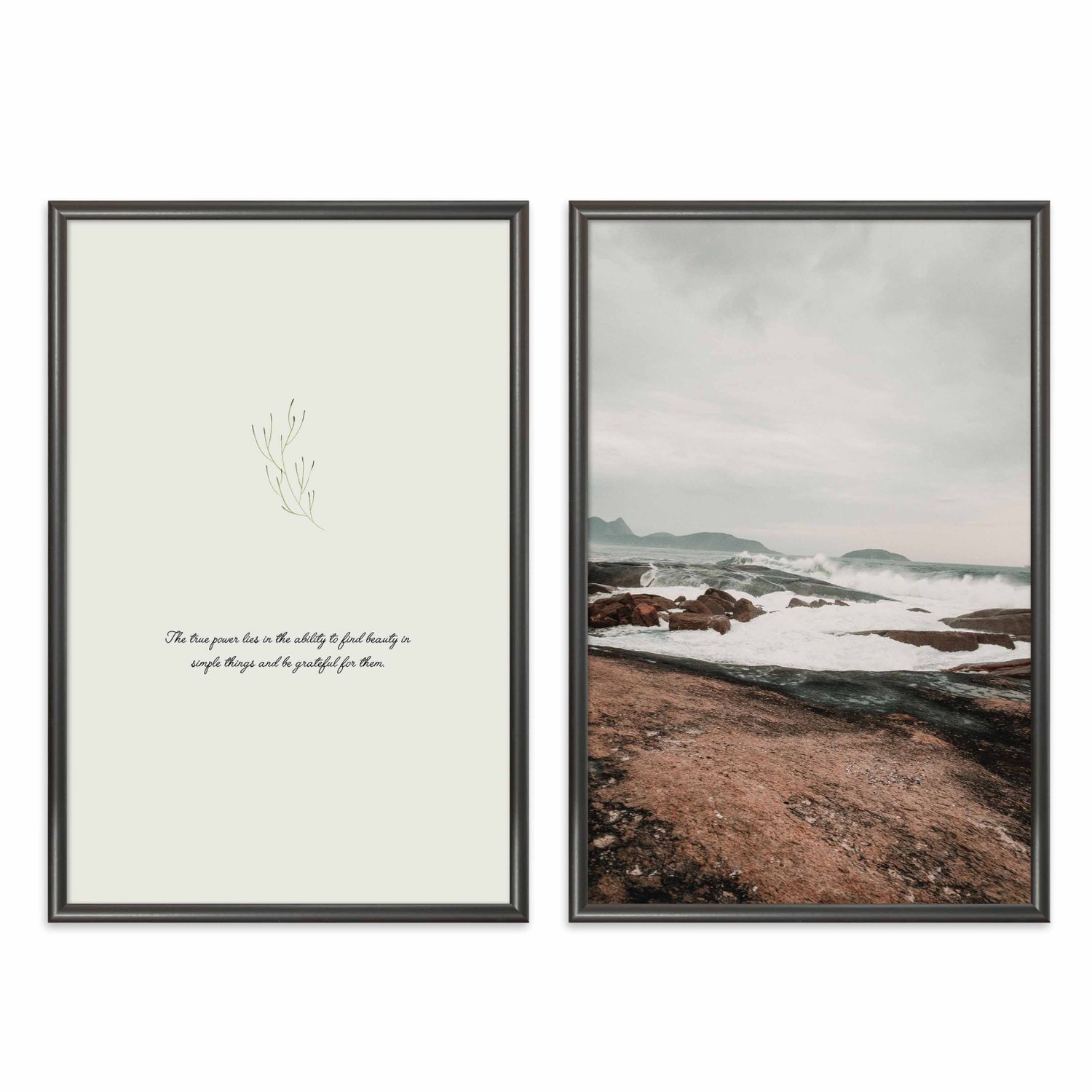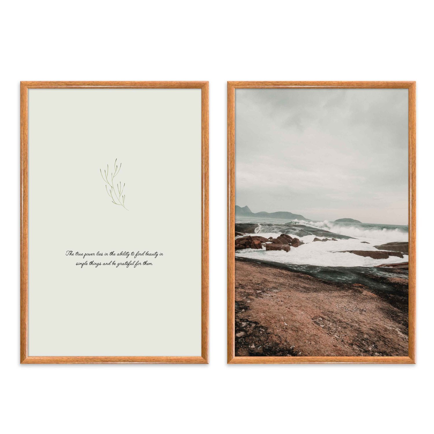 Kit Quadros Decorativos Paisagem Praia E Frase The True Power Lies In The Ability To Find Beauty In Simple Things And Be Grateful For Them