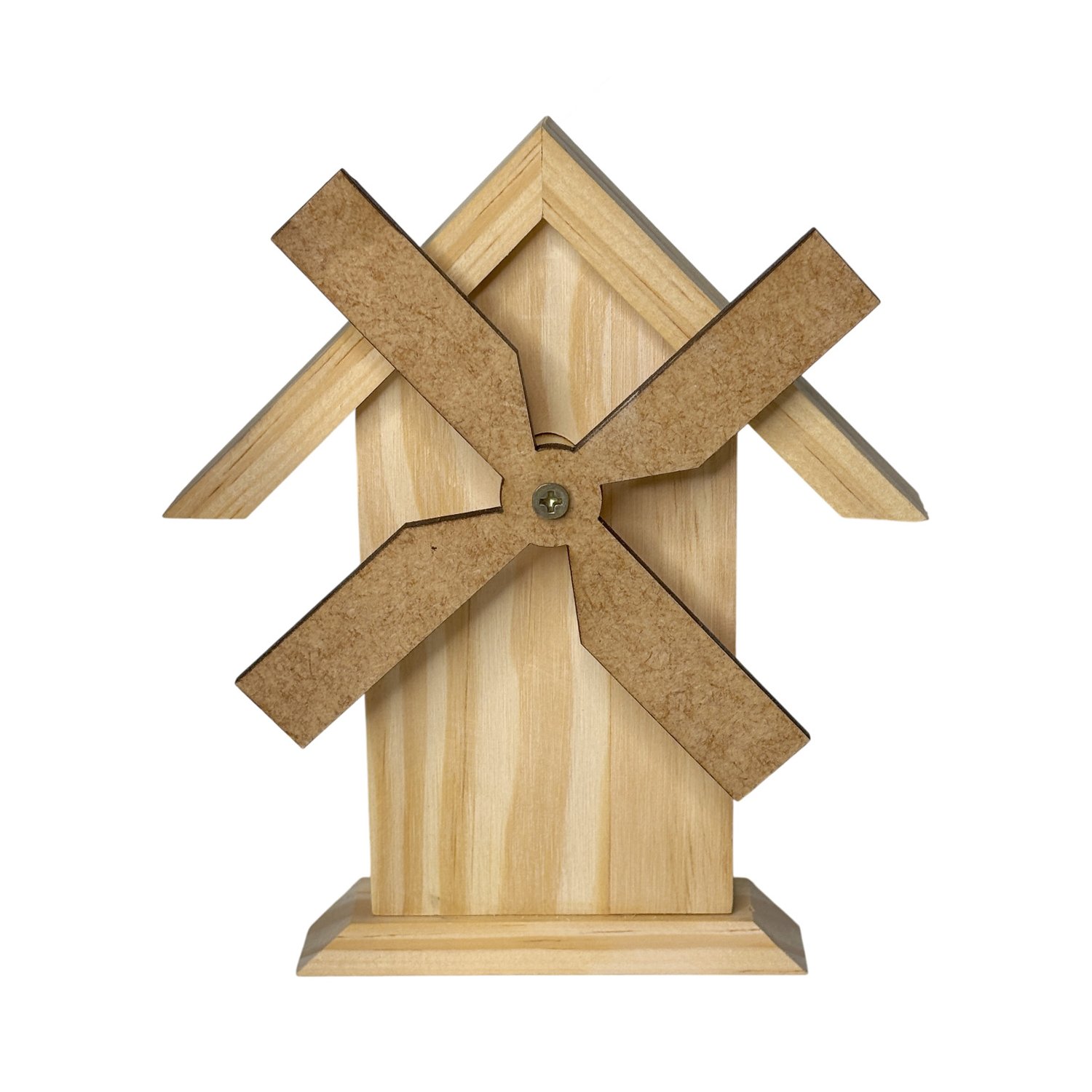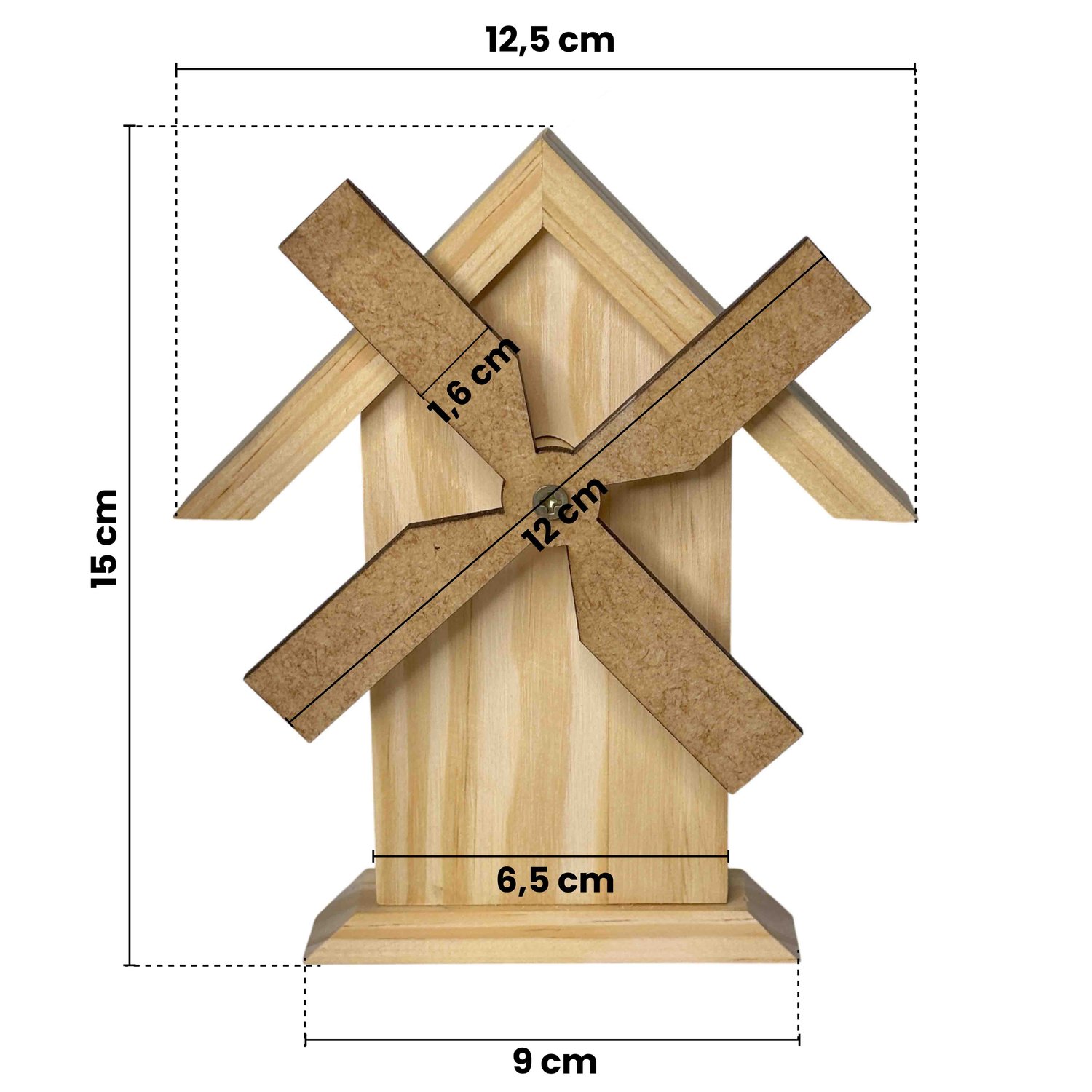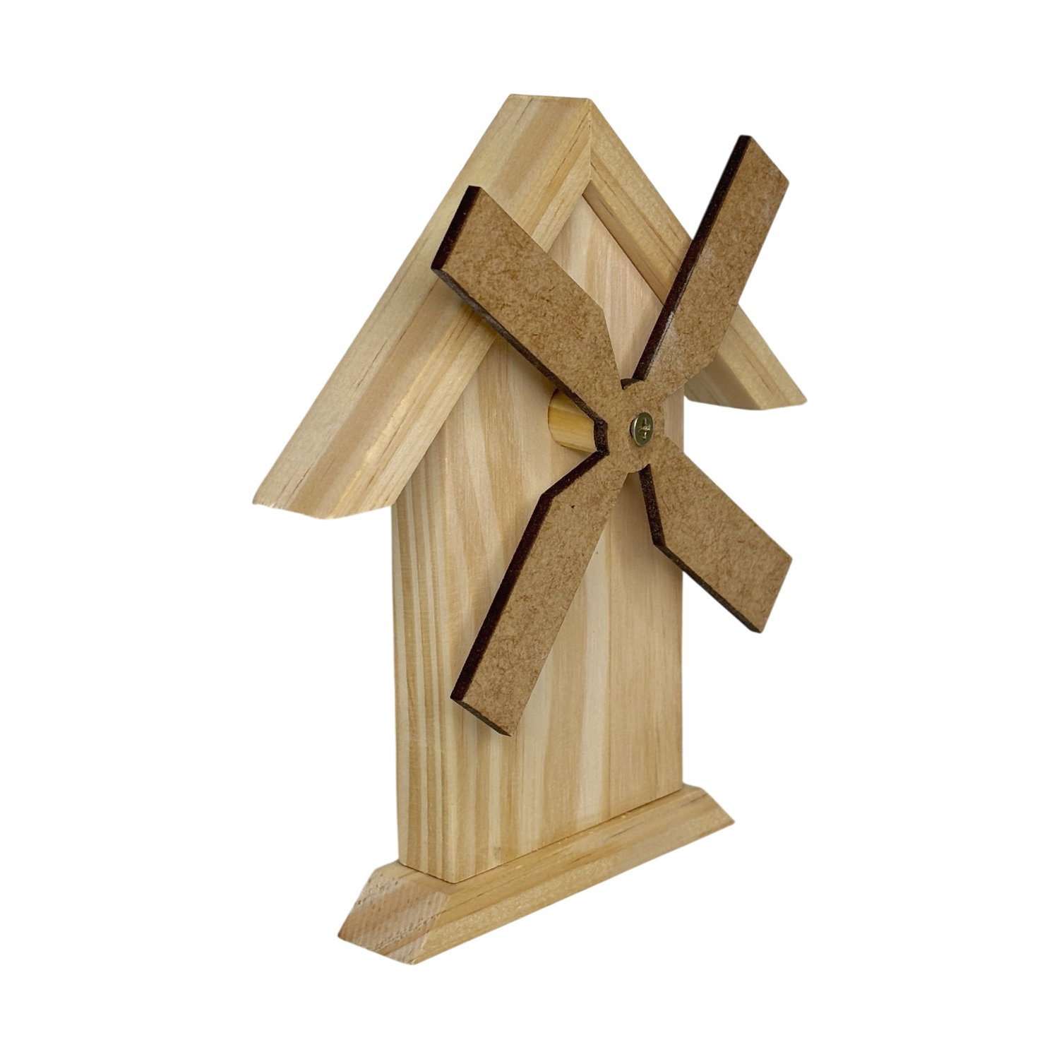 Moinho de Vento Com Telhado Em Madeira Pinus Ideal para Artesanato, DIY, Decoupage, Presente e Decoração Criativa