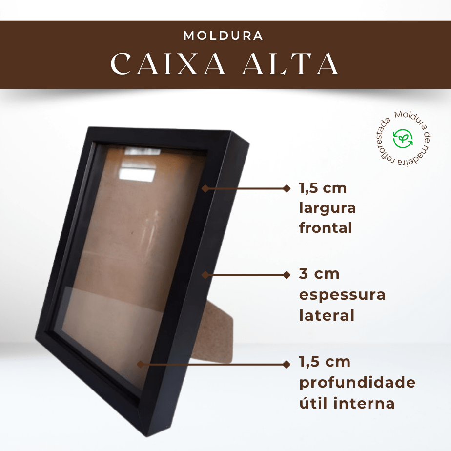 A Moldura Caixa Alta é a escolha ideal para quem deseja eternizar memórias com estilo e criatividade. Seja para composições de scrapbook, quilling, maternidade, flores secas, medalhas ou pequenos objetos tridimensionais, essa moldura oferece o espaço, a estética e a proteção que seu projeto merece.