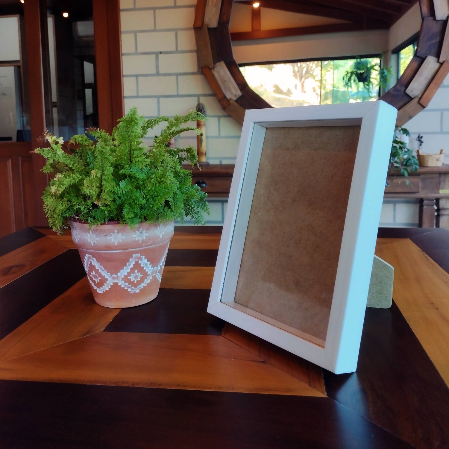 Essas molduras possuem suporte para apoio em superfícies planas, como móveis, penteadeiras, mesas de centro ou prateleiras. Não são recomendadas para uso pendurado na parede com o suporte. Se a sua ideia é pendurá-la, oferecemos a opção de comprar sem o suporte, pronta para fixação vertical.