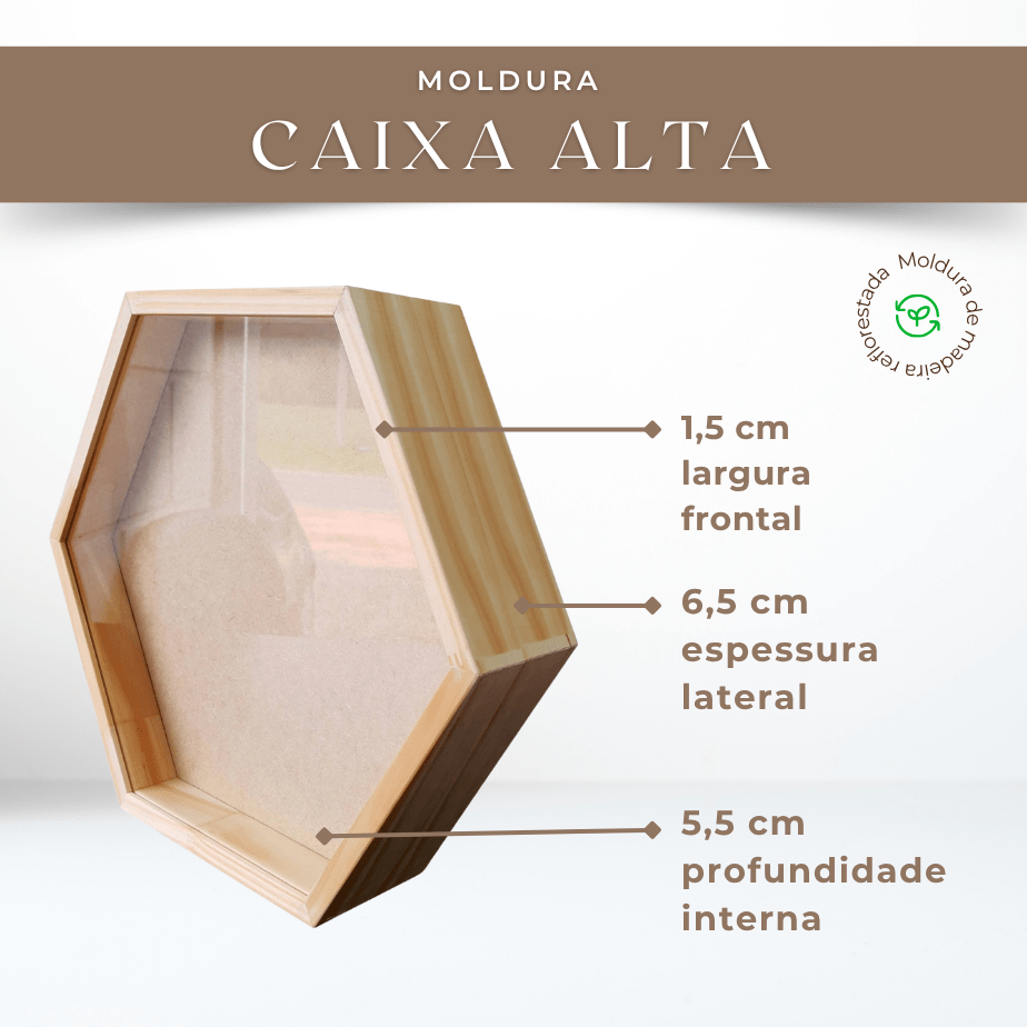 A Moldura Caixa Alta é a escolha ideal para quem deseja eternizar memórias com estilo e funcionalidade. Seja para composições de scrapbook, quilling, flores secas, maternidade, medalhas, miniaturas ou objetos tridimensionais afetivos, essa moldura oferece o espaço, a estética e a proteção que seu projeto merece.