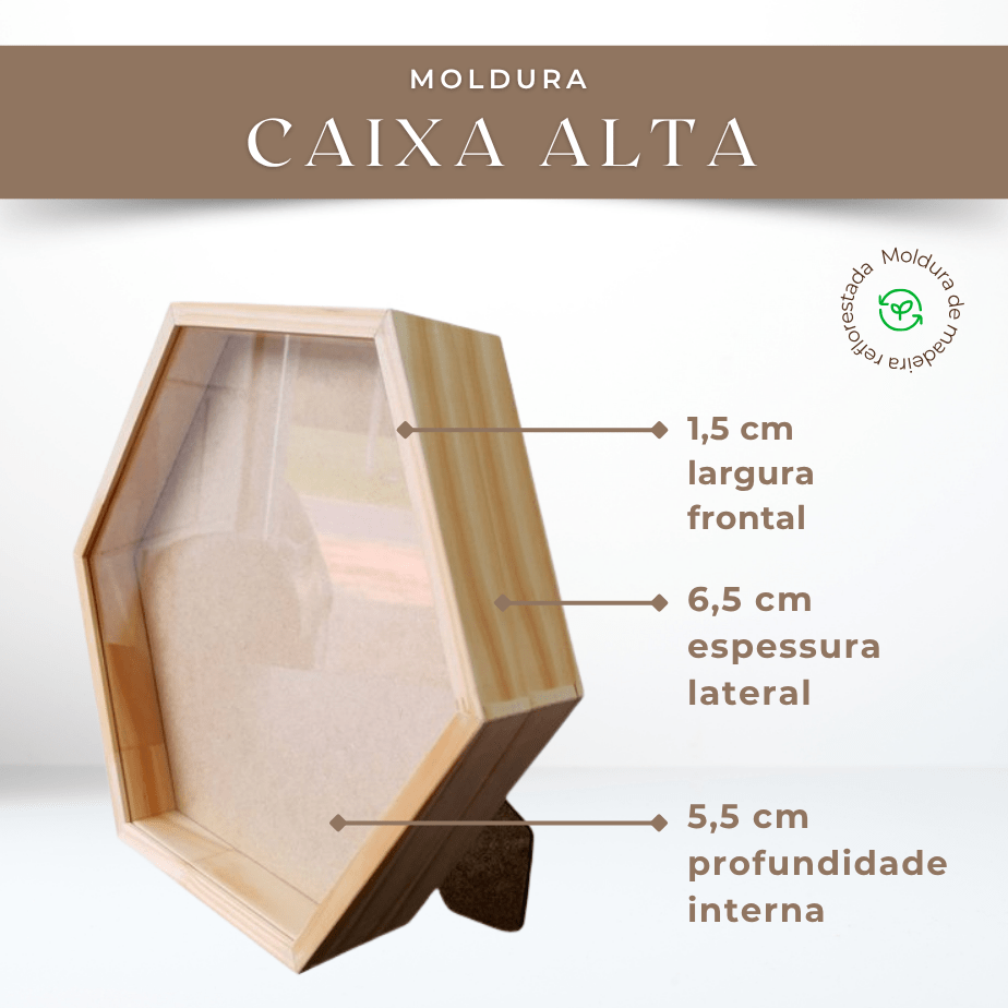 A Moldura Caixa Alta é a escolha ideal para quem deseja eternizar memórias com estilo e funcionalidade. Seja para composições de scrapbook, quilling, flores secas, maternidade, medalhas, miniaturas ou objetos tridimensionais afetivos, essa moldura oferece o espaço, a estética e a proteção que seu projeto merece.