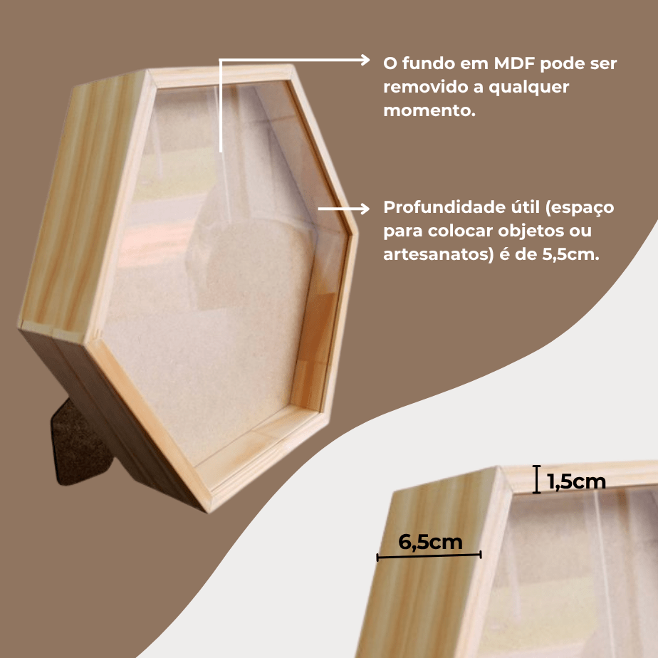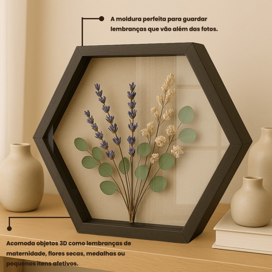 Moderna, ousada e cheia de personalidade, essa versão traz dinamismo à decoração, transformando qualquer composição em um verdadeiro ponto focal. O formato hexagonal é perfeito para criar galerias criativas, mosaicos afetivos ou destacar peças únicas com um visual contemporâneo e inspirador.