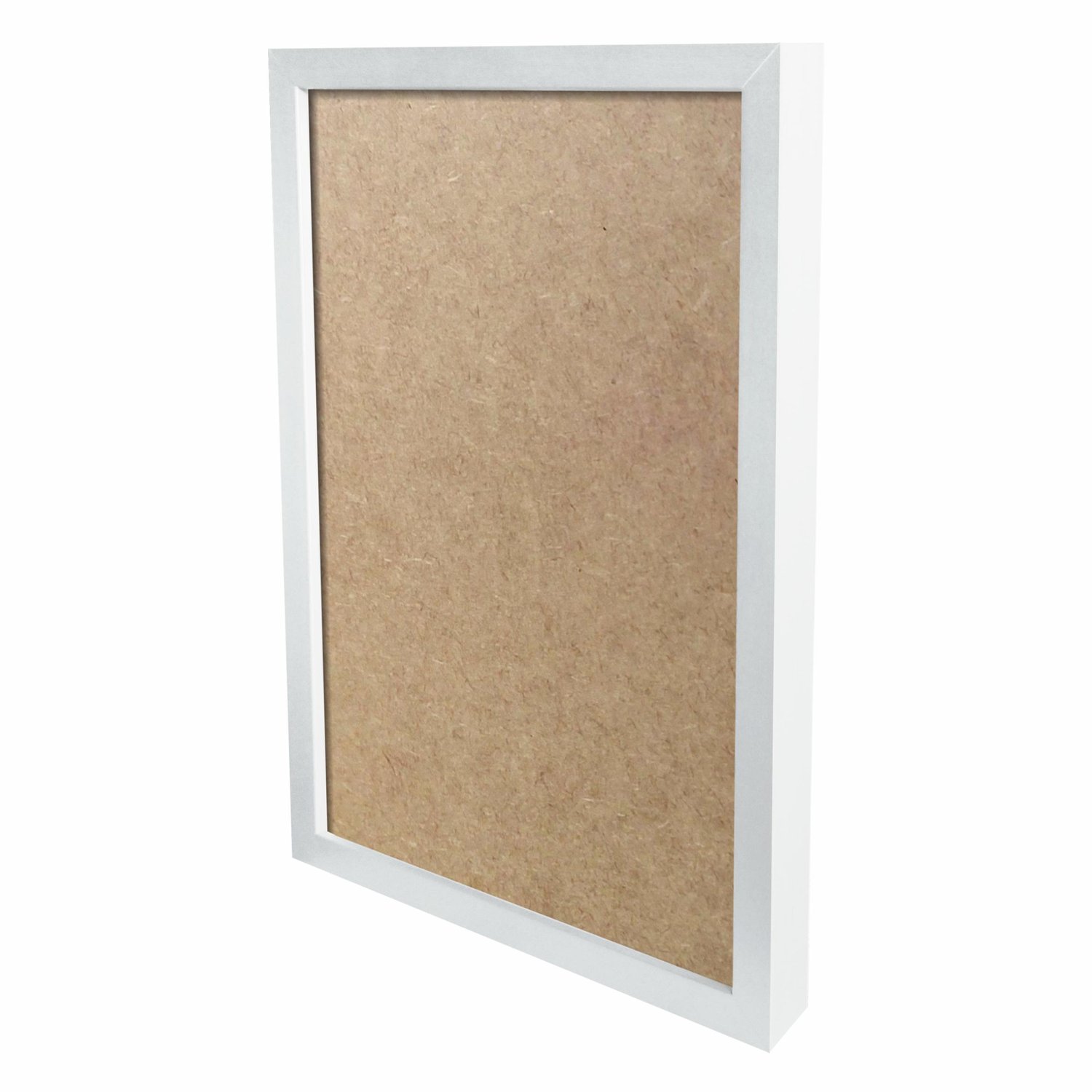 Material: Moldura em Madeira revestida com Laminação, fundo em MDF.