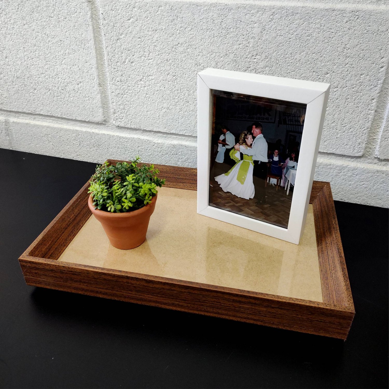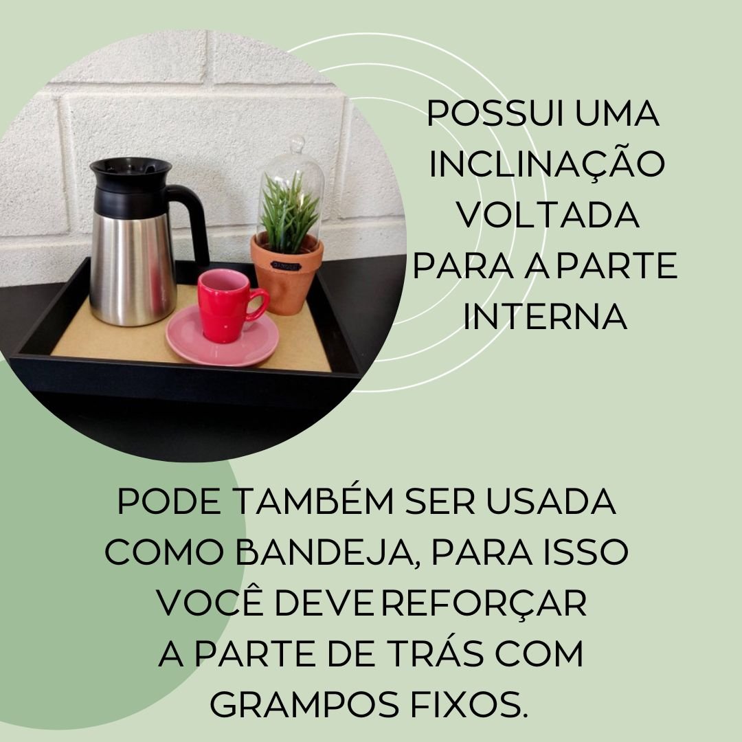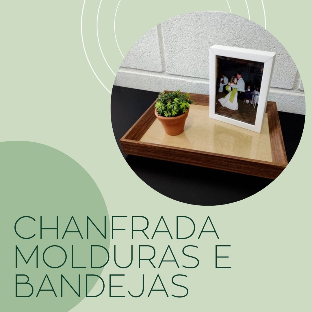 A Moldura Chanfrada possui uma inclinação na sua superfície voltada para a parte interna, ou seja, não é tradicionalmente reta, possui uma forma similar a um triângulo. E por sua Altura e beleza, essa moldura pode ser perfeitamente utilizada como bandeja, combinando as cores com seu ambiente. Porém, para ser utilizada como bandeja, você deve reforçar com grampos fixos da parte de trás.