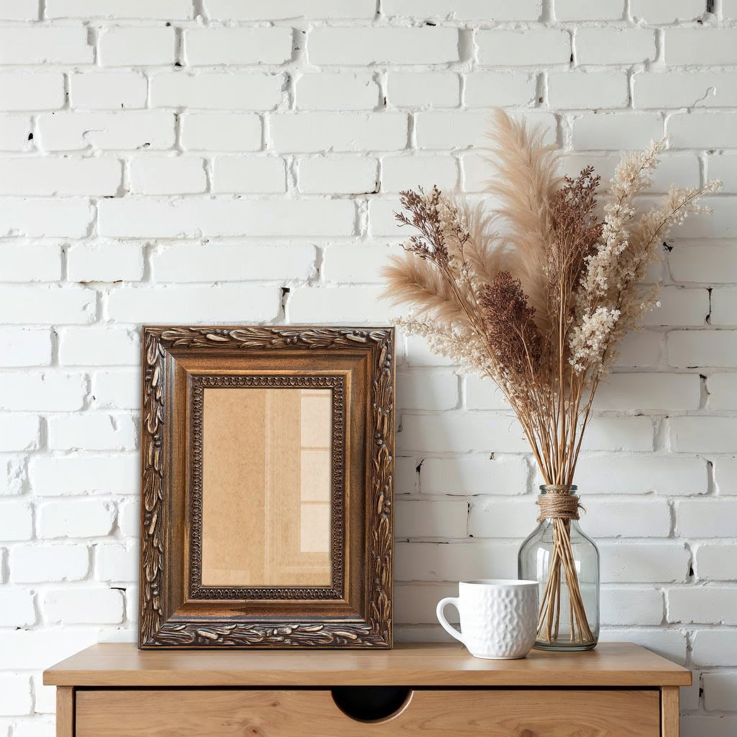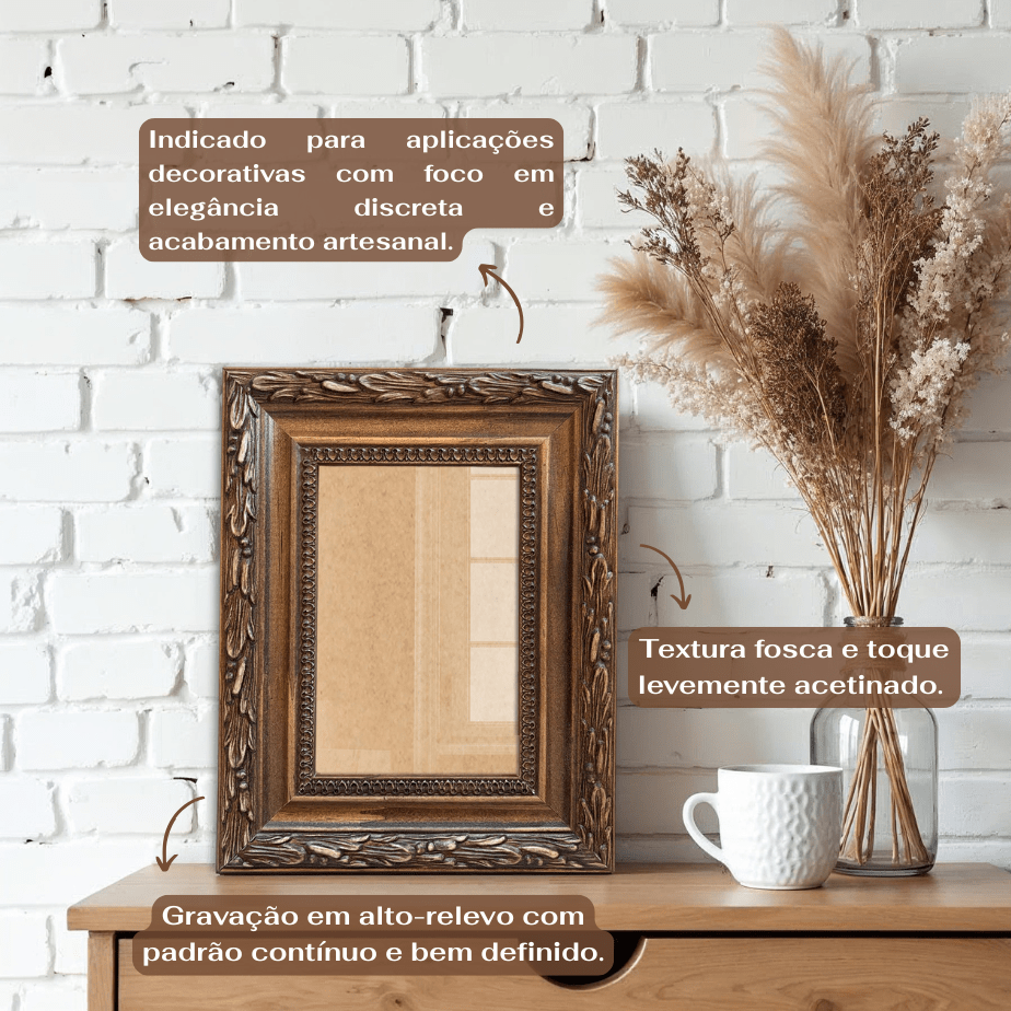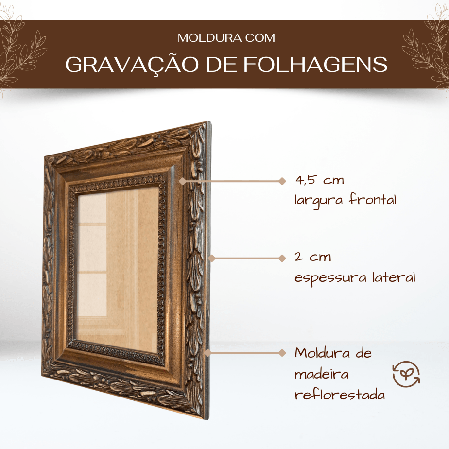 Moldura Com Gravação De Folhagens Para Quadros E Fotos Com Fundo MDF e Frente Em PS Cristal Transparente - 4,5x2