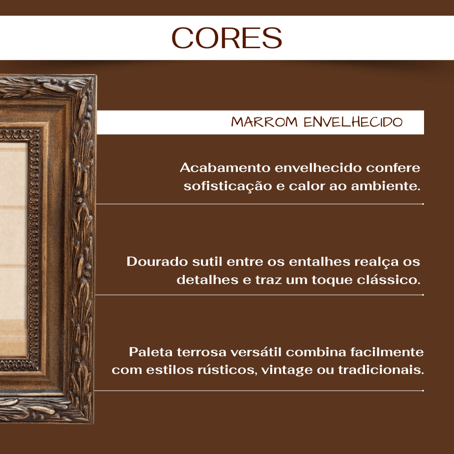 Informações Complementares: As medidas informadas no anúncio se referem ao tamanho interno da moldura, onde é o encaixe para a imagem.