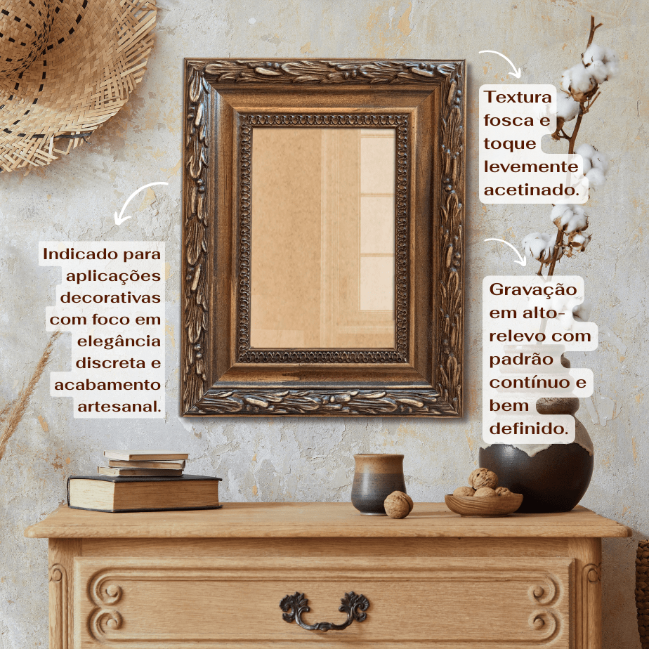 Moldura Com Gravação De Folhagens Para Quadros E Fotos Com Fundo MDF e Frente Em Vidro - 4,5x2