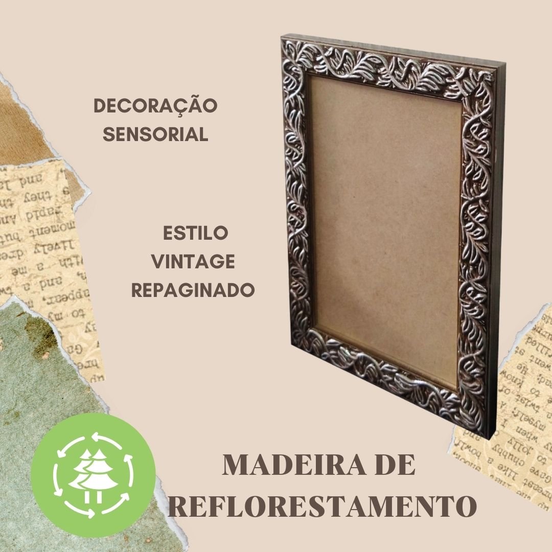 Moldura com Gravação de Folhagens para Quadros e Fotos com Fundo MDF e PVC Antirreflexo - 2x1