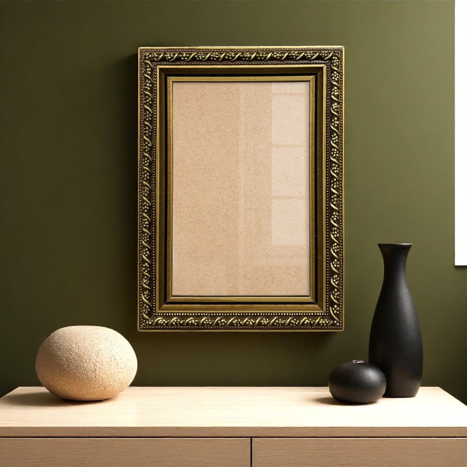 Dê vida às suas paredes com a moldura decorativa dourada que é puro requinte! Nossa moldura com gravação floral em alto relevo é a escolha perfeita para quem deseja destacar fotos, quadros e pôsteres com um toque de sofisticação clássica.