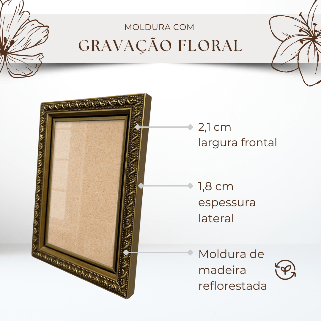 Por que esperar? Garanta já a sua moldura dourada com gravação floral e transforme qualquer espaço em uma verdadeira galeria de elegância!