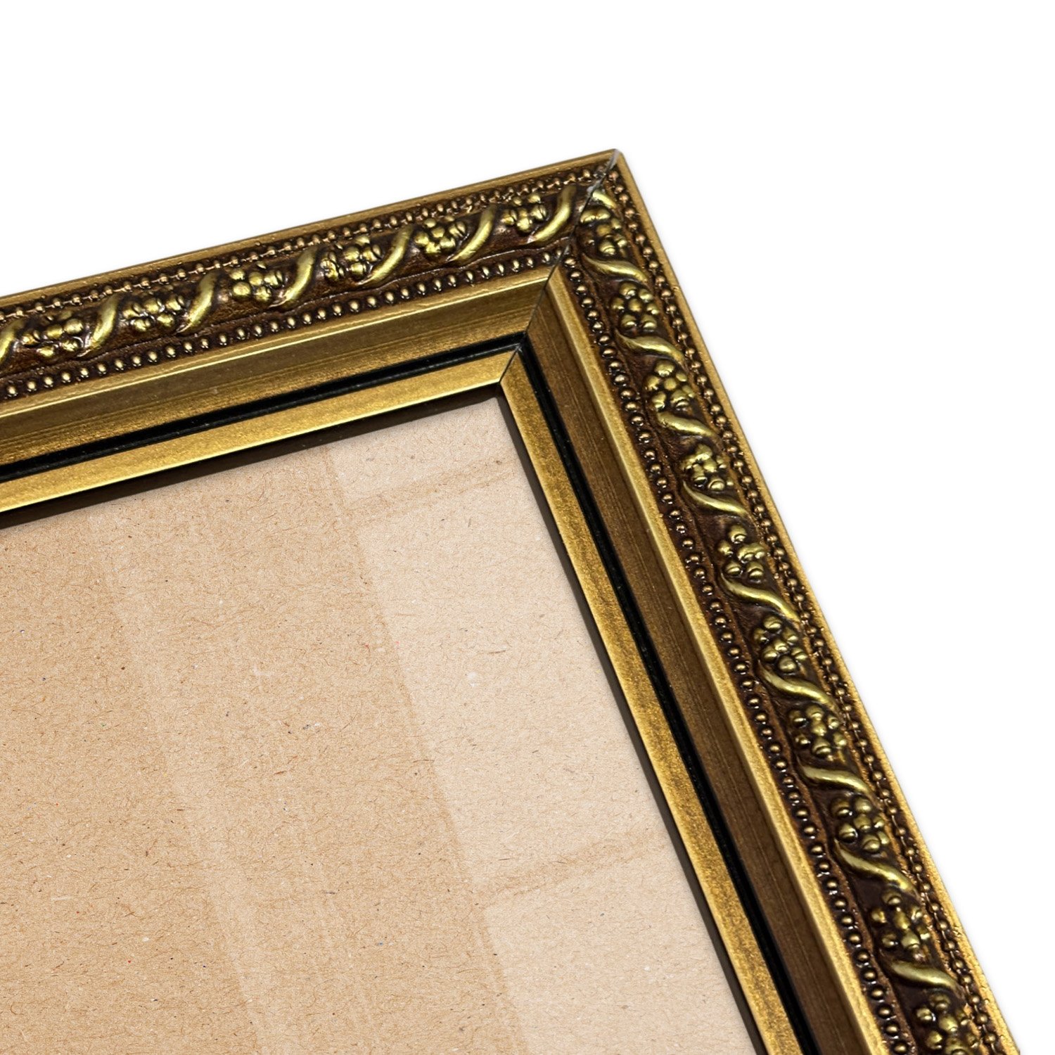 Moldura Com Gravação Floral Em Relevo Com Filete Perolado e Acabamento Dourado Metalizado Para Quadros E Fotos Com Fundo MDF e Frente Em PS Cristal Transparente - 2,1x1,8