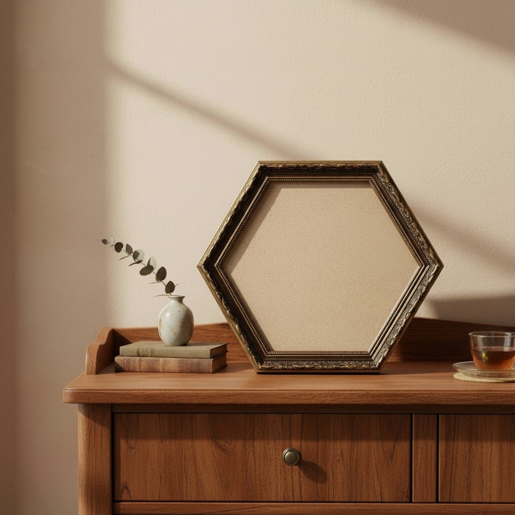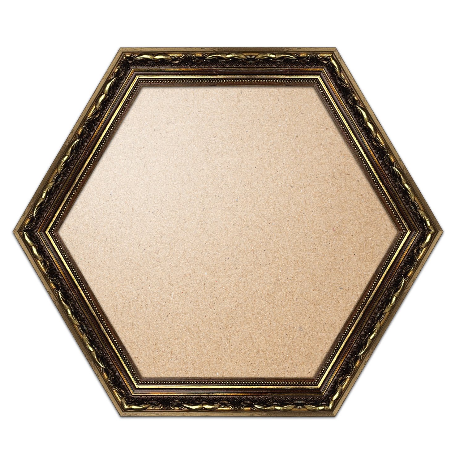 Moldura Dourada Hexagonal com Gravação para Quadros com Fundo em MDF e PVC Antirreflexo- 4x2,5