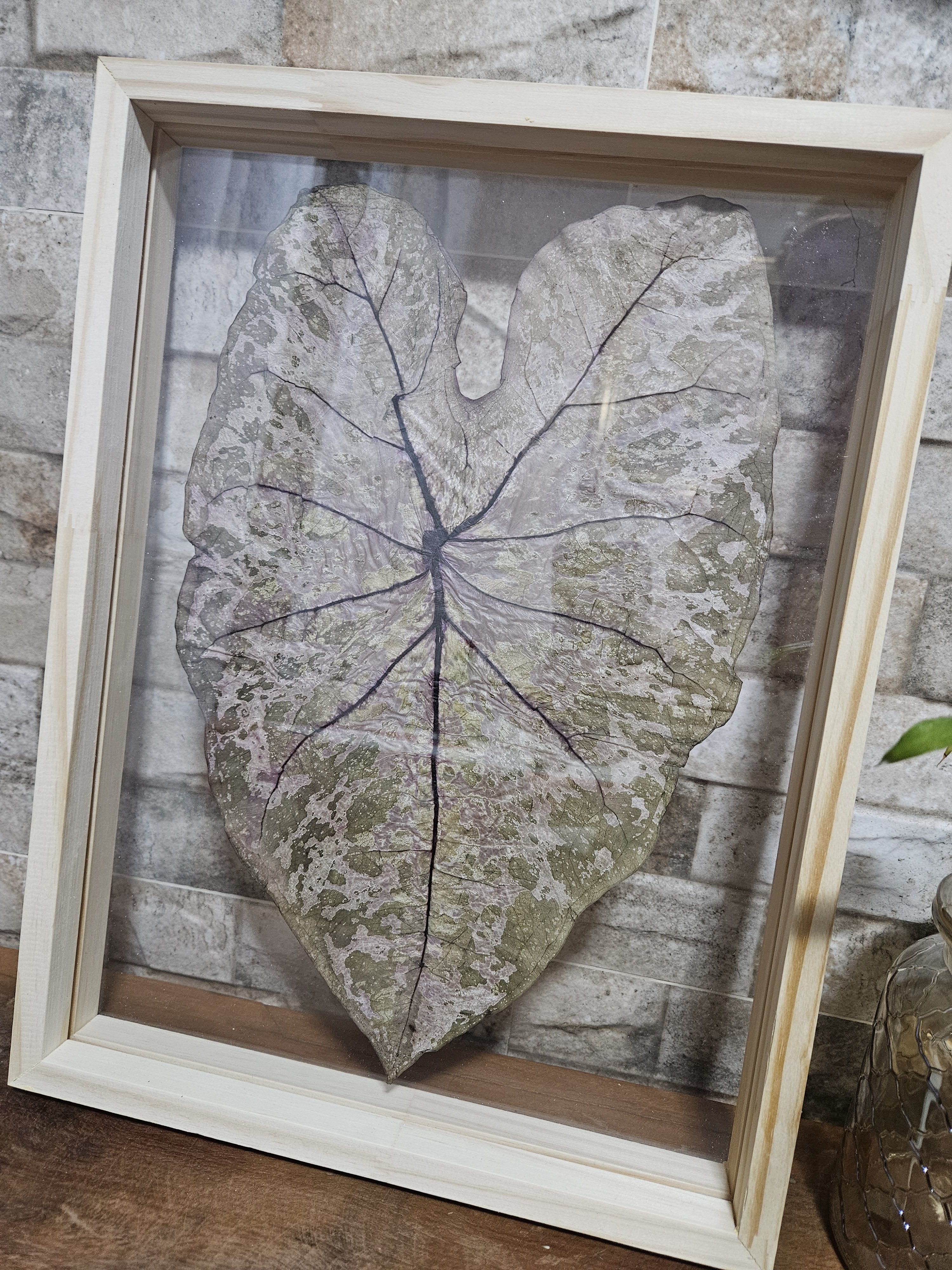Essa moldura é ideal para quem deseja uma visualização dupla da imagem (parte da frente e de trás). Ótima para guardar e proteger suas imagens ou recordações, como flores ou folhas secas. Como os objetos ficam entre dois painéis de ps cristal dão a sensação de estarem suspensas. Sobre a moldura é aplicado a técnica pátina em madeira, trazendo um toque rústico para seu ambiente.