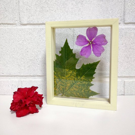 Essa moldura é ideal para quem deseja uma visualização dupla da imagem (parte da frente e de trás). Ótima para guardar e proteger suas imagens ou recordações, como flores ou folhas secas. Como os objetos ficam entre dois painéis de ps cristal dão a sensação de estarem suspensas. Sobre a moldura é aplicado a técnica pátina em madeira, trazendo um toque rústico para seu ambiente.