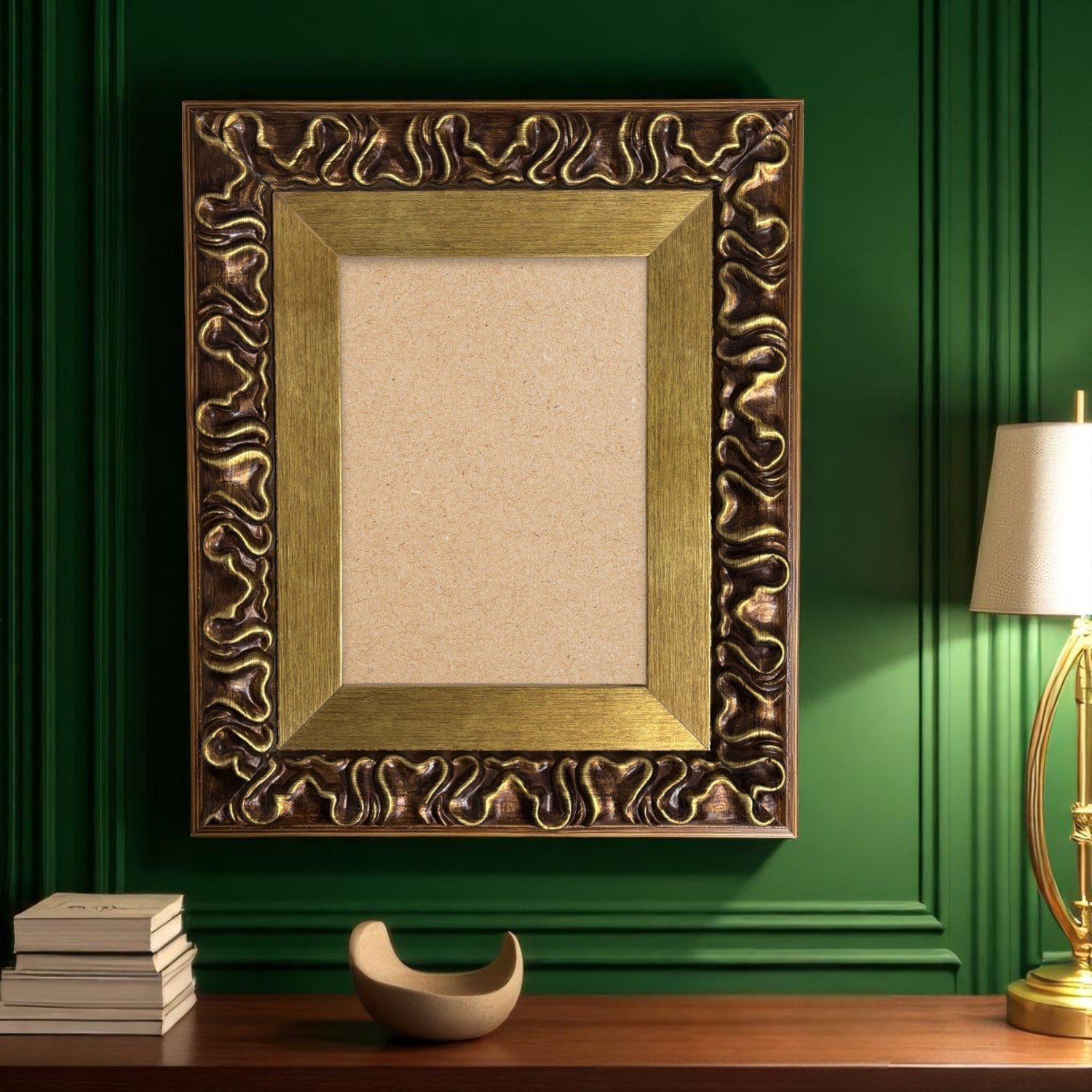 Moldura Efeito Escovado Fino e Gravação de Curvas Fluidas para Quadros e Fotos com Fundo Mdf - 7,1x2,8