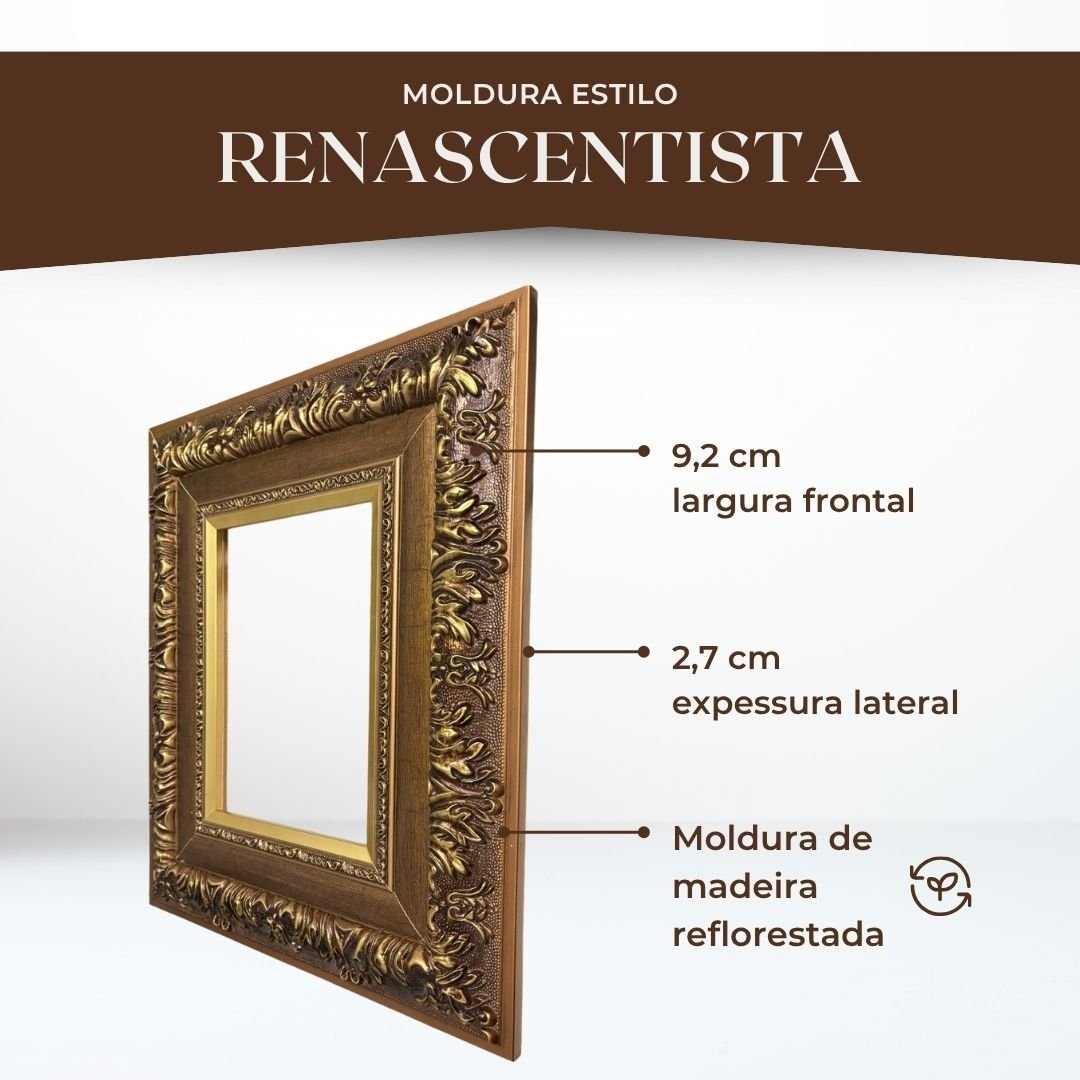 Descubra a moldura que transforma o comum em extraordinário. Inspirada na grandiosidade do período renascentista, esta peça é um verdadeiro tributo à beleza clássica e à excelência artesanal. Criada para quem valoriza sofisticação atemporal, ela não apenas emoldura: ela exalta. Seja em uma obra de arte, em um espelho de luxo ou em uma composição decorativa, sua presença impõe elegância e refinamento com naturalidade.