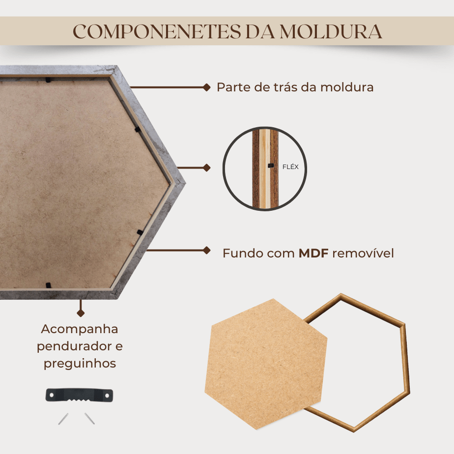 Imagine transformar seu espaço com uma moldura que não só emoldura, mas também valoriza sua obra de arte ou fotografia! A moldura hexagonal abaulada possui um estilo clássico e único, e é perfeita para adicionar uma sensação de movimento e profundidade, pois seu design arredondado cria um efeito tridimensional. Feita com materiais de alta qualidade, ela oferece um fundo em MDF, que ajuda a proteger a imagem contra danos, como deformações ou umidade, garantindo maior conservação ao longo do tempo. Além disso, seu revestimento altamente resistente é muito superior às molduras tradicionais em gesso, proporcionando alta durabilidade e beleza, enquanto seu formato hexagonal traz um toque moderno e sofisticado ao ambiente.