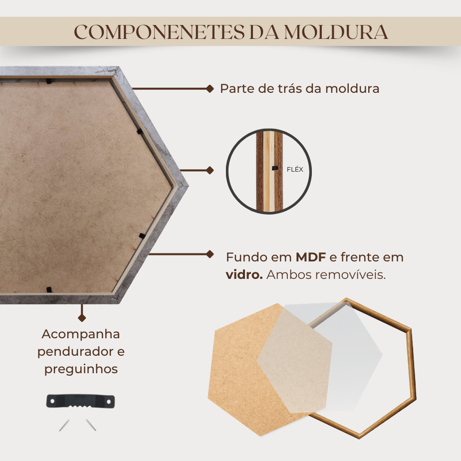 Imagine transformar seu espaço com uma moldura que não só emoldura, mas também valoriza sua obra de arte ou fotografia! A moldura hexagonal abaulada possui um estilo clássico e único, e é perfeita para adicionar uma sensação de movimento e profundidade, pois seu design arredondado cria um efeito tridimensional. Feita com materiais de alta qualidade, ela oferece um fundo em MDF e frente em vidro, que ajuda a proteger a imagem contra danos, como deformações ou umidade, garantindo maior conservação ao longo do tempo. Além disso, seu revestimento altamente resistente é muito superior às molduras tradicionais em gesso, proporcionando alta durabilidade e beleza, enquanto seu formato hexagonal traz um toque moderno e sofisticado ao ambiente.