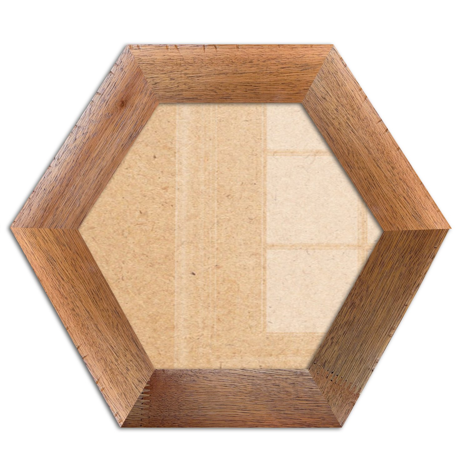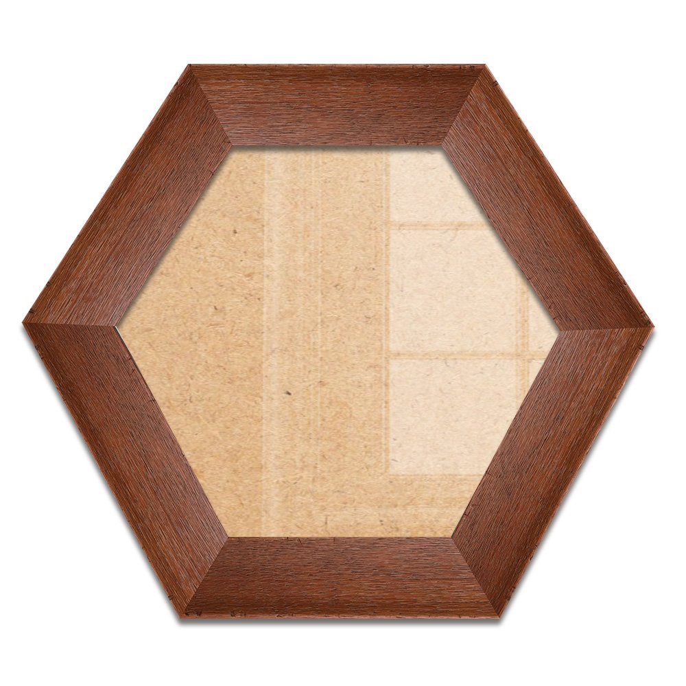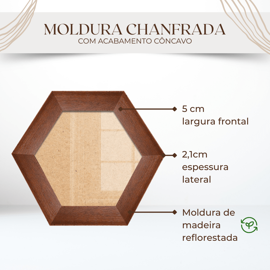 Moldura Hexagonal Chanfrada com Acabamento Côncavo Estilo Madeira Rústica Com Fundo MDF E Frente Em Vidro - 5x2,1